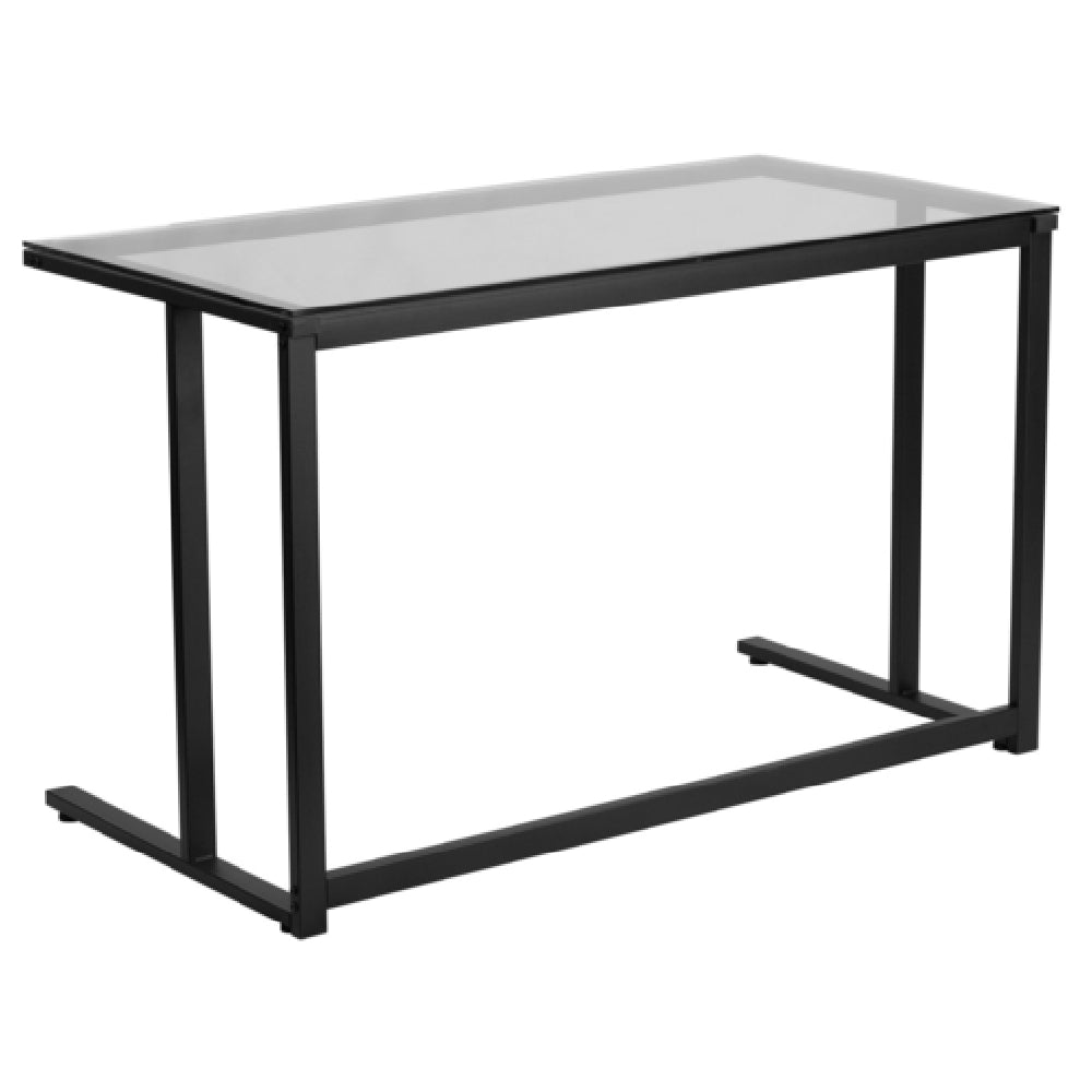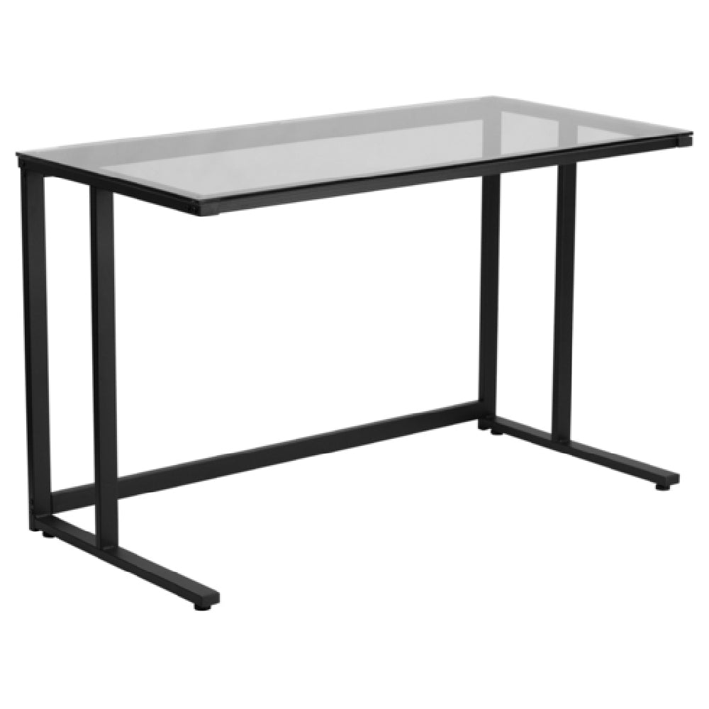 Flash Furniture NAN-WK-055-GG 47-1/4 Inch Computer Desk Clear Tempered Glass Top Black Powder Coated Metal Frame