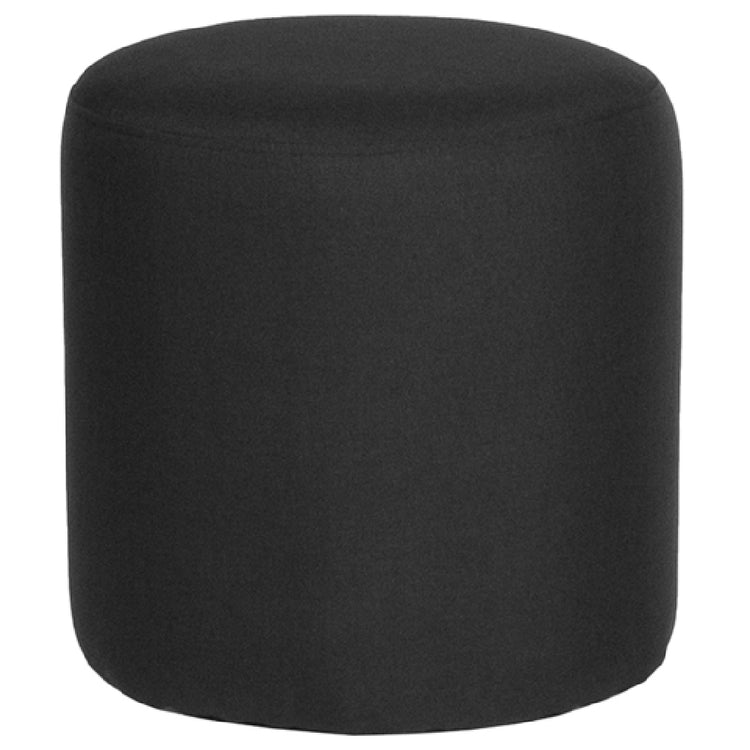 The Flash Furniture Barrington Ottoman/Pouf features a 15-3/4-inch diameter and 16-1/4-inch height, constructed with a sturdy framework supporting a taut fabric upholstery and CA117 fire retardant foam for enhanced safety. It weighs 10 pounds, facilitating easy repositioning in various spaces. The black fabric finish offers a neutral aesthetic that complements contemporary interior designs. Its clean design, combined with plastic pin gliders, ensures stability on different flooring types. Suitable for moderate-use environments, its non-reclining form requires minimal maintenance, making it a reliable seating solution for hospitality and commercial settings. The unit’s measured dimensions and material composition align with standard commercial furniture specifications for safety and durability.