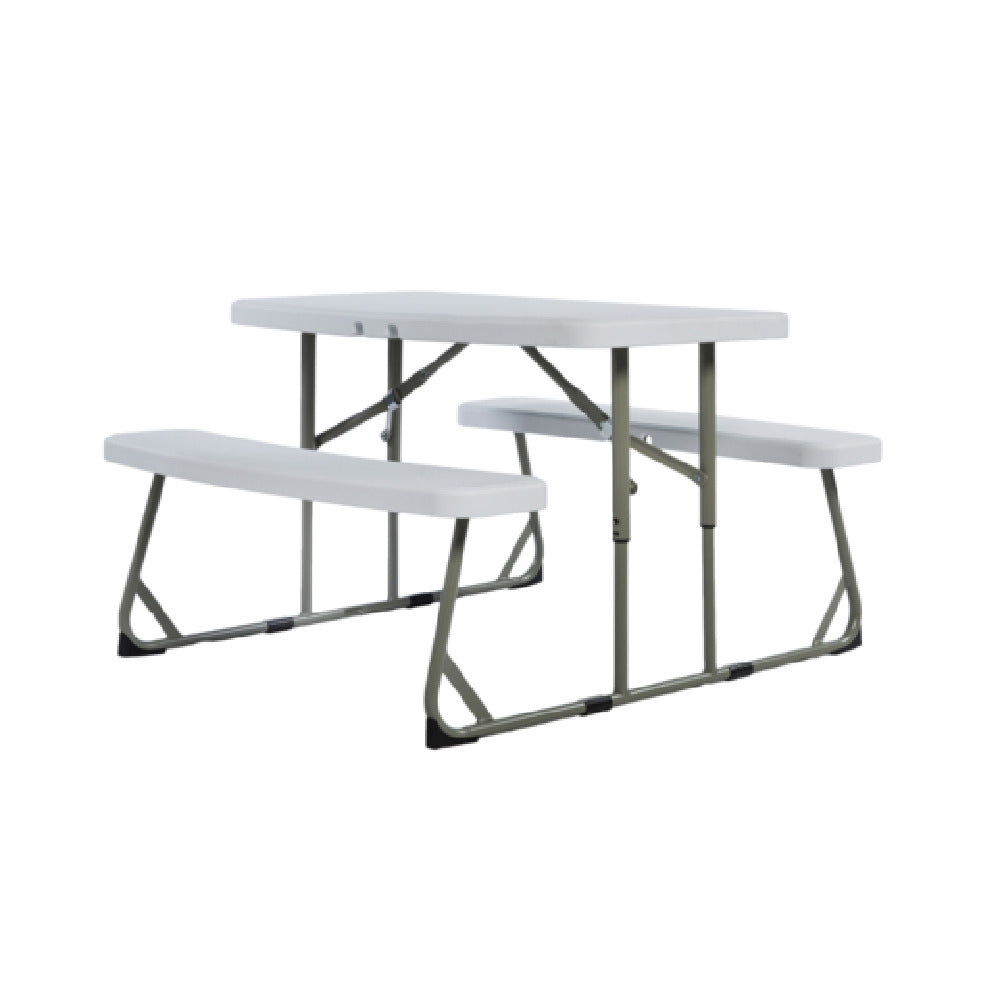 The Flash Furniture RB-EBB-2432FD2-WH-GG picnic table and bench feature a durable plastic construction optimized for outdoor use, designed to withstand weather exposure and regular cleaning. Its easy-fold mechanism enhances efficiency for setup and storage, while the commercial-grade build supports consistent use in high-traffic environments. Equipped with a sturdy, lightweight frame, this set easily accommodates frequent handling by staff, making it suitable for outdoor education centers, parks, and outdoor dining areas with moderate activity levels.