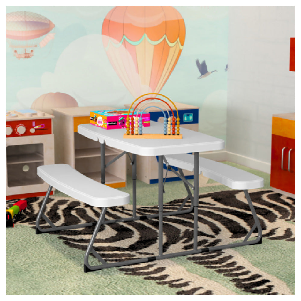 The Flash Furniture RB-EBB-2432FD2-WH-GG Paige Easy-Fold Kids Outdoor Picnic Table & Bench is a commercial-grade outdoor furniture solution designed for optimal durability and functionality. Crafted from high-quality plastic in a clean white finish, this picnic set provides seating for four children, making it ideal for educational, recreational, and hospitality environments seeking resilient and easy-to-maintain outdoor furniture. Its foldable design facilitates space-efficient storage and quick deployment in busy outdoor settings, supporting operational flexibility for facilities managing frequent outdoor activities or dining spaces. The table measures 32.62 inches in width, 37.5 inches in depth, and stands 21.5 inches high, ensuring comfortable seating and stability for young users.