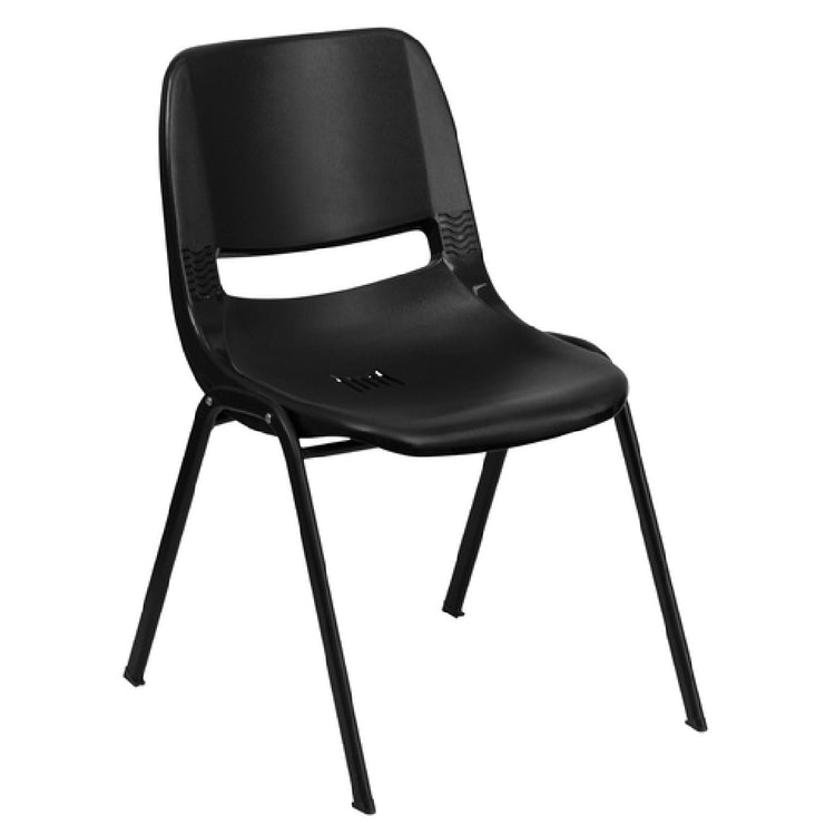 Flash Furniture RUT-12-PDR-BLACK-GG 14 Inch Plastic Stacking Chair Black Powder Coated Metal