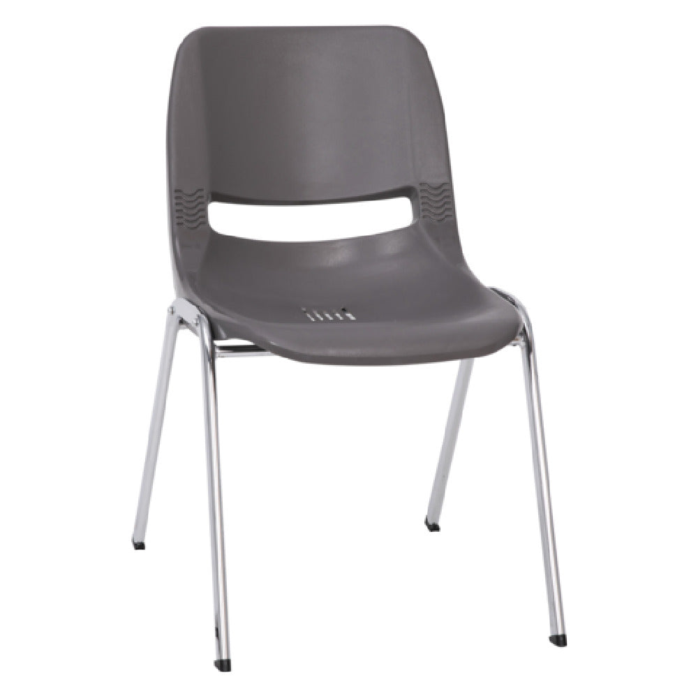 Flash Furniture RUT-18-GY-CHR-GG 19 Inch Gray Plastic Stacking Chair with Chrome Frame
