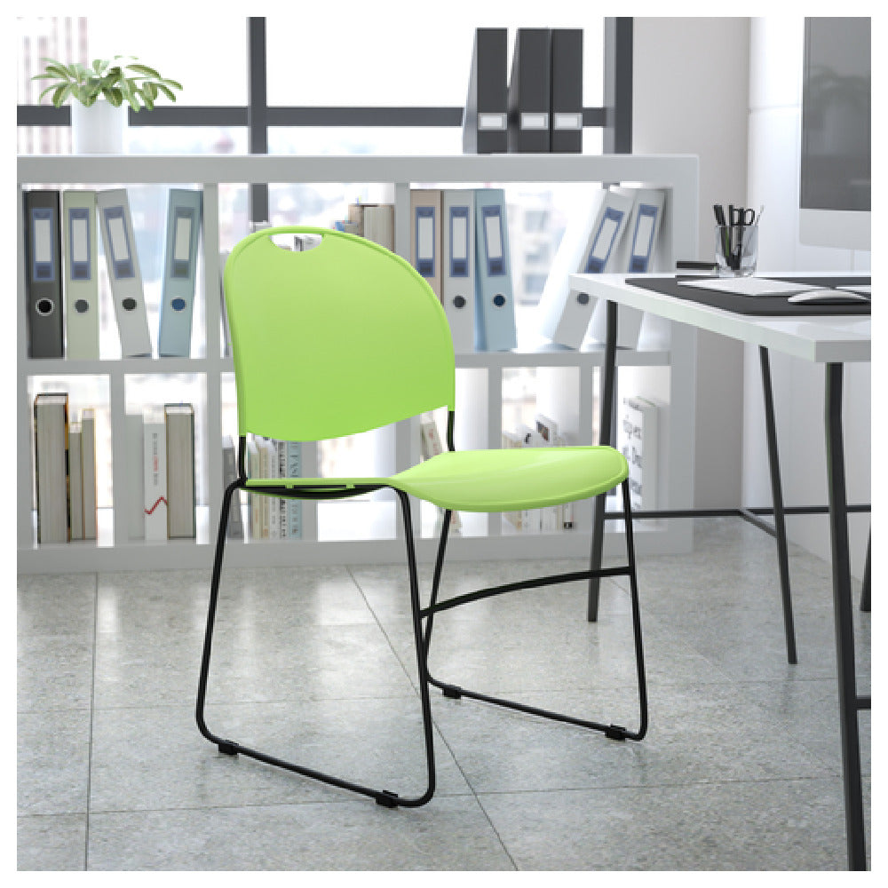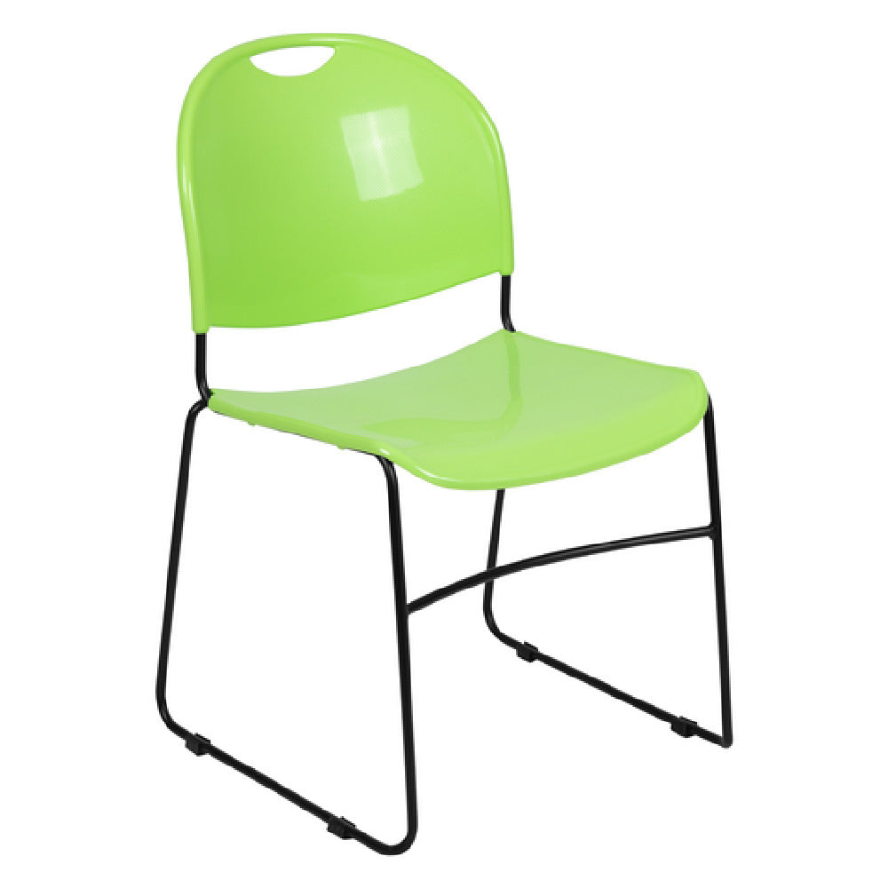 The Flash Furniture RUT-188-GN-GG Hercules Series Ultra Compact Stacking Chair is a commercial-grade seating solution designed for versatile indoor and outdoor use. Built with a durable polypropylene seat and back, this side stacking chair offers high performance with an 880 lb. weight capacity. Its textured seat surface ensures slip resistance, while the ergonomic design provides user comfort during extended periods of occupancy. The black powder-coated metal sled base frame, composed of 12 x 1.8mm gauge steel, guarantees stability and resilience in high-traffic environments, making it suitable for banquet halls, conference rooms, and outdoor event spaces. Its fully assembled construction expedites deployment, and its stackability up to 35 chairs enables efficient storage and quick setup for various commercial applications.