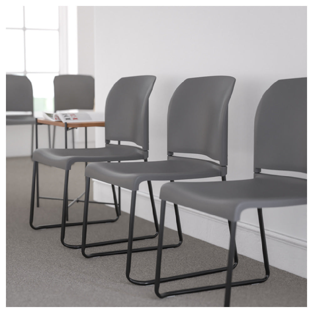 A commercial reception chair is a durable, ergonomic seating element designed for high-traffic waiting areas, lobbies, or reception stations. It features robust construction with materials suited for frequent cleaning and long-term use, such as metal frames and polypropylene surfaces. The Flash Furniture RUT-238A-GY-GG Hercules Series Reception Chair, specifically, offers support for up to 880 lbs., incorporating a contoured design to enhance comfort during extended use. It is typically installed in environments like hospitality venues, corporate offices, or healthcare facilities and is optimized for customer and visitor seating in moderate to high-volume settings.