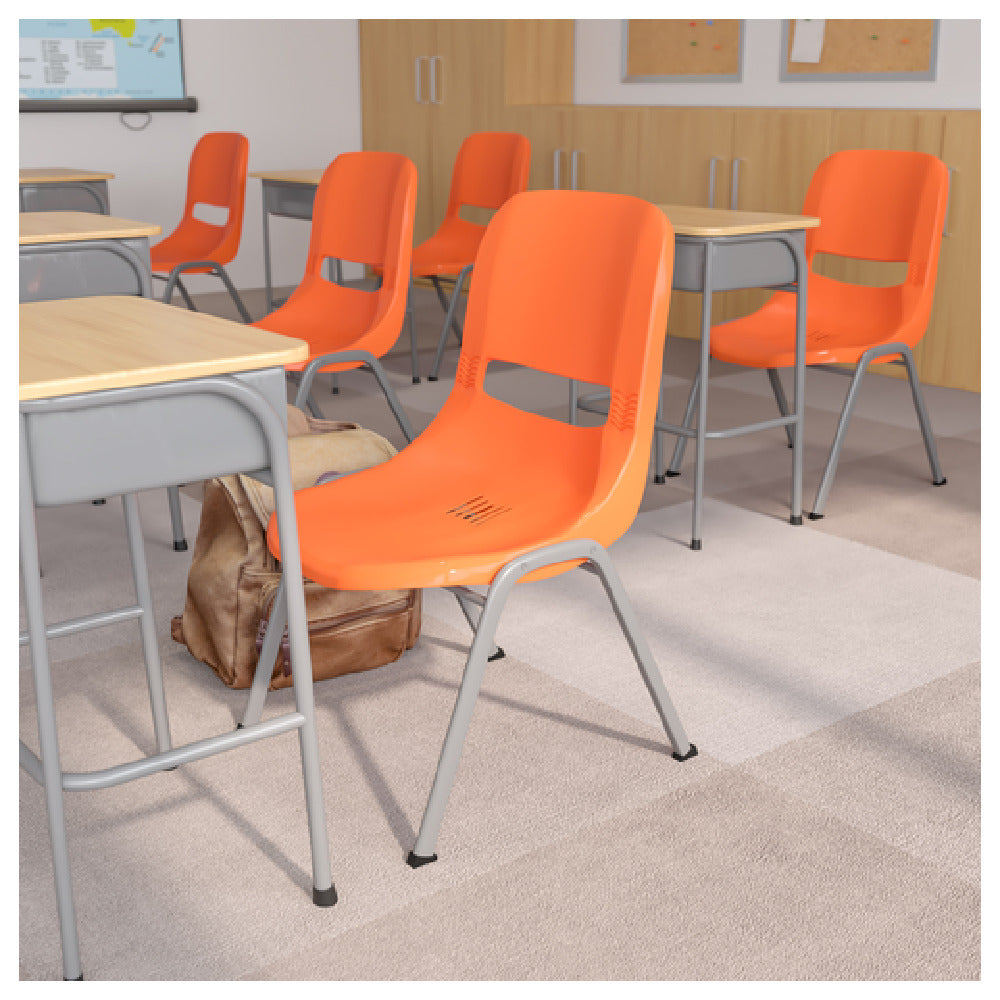 Flash Furniture RUT-EO1-OR-GG 19 Inch Plastic Seat Ergonomic Stacking Chair Orange