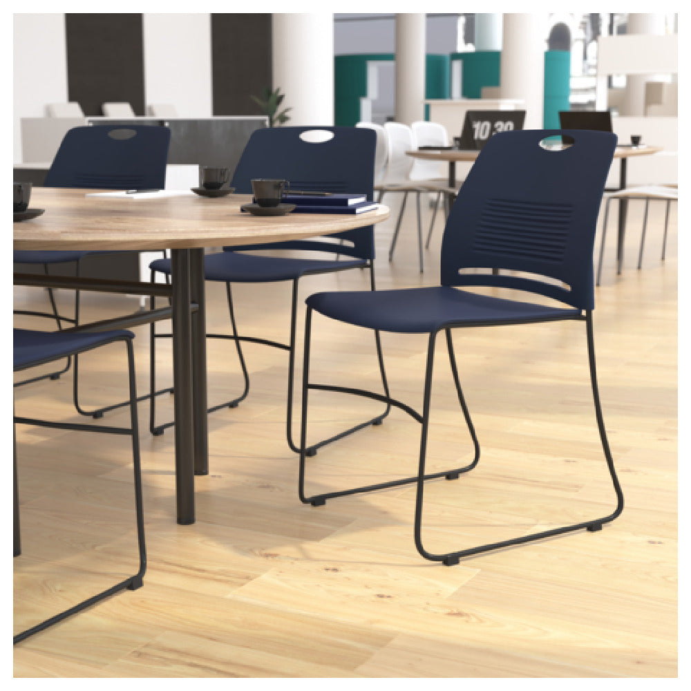 Flash Furniture, RUT-NC499A-NAVY-GG, HERCULES Series Commercial Grade 660 lb. Capacity Navy Plastic Stack Chair with Black Powder Coated Sled Base Frame and Integrated Carrying Handle