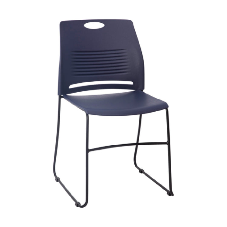 The HERCULES Series Navy Plastic Stack Chair is tailored for commercial foodservice operations needing sturdy, space-efficient seating. Its high-capacity polymer seat and steel sled base combine strength and corrosion resistance, supporting frequent stacking and handling. The integrated carrying handle allows fast rearrangement and storage, while the thermoplastic surface resists spills and stains. Dimensions and weight optimize maneuverability in busy environments, supporting high-volume seating arrangements without sacrificing durability. Designed for institutional settings, this chair withstands demanding daily use in cafeterias, training centers, and event venues.