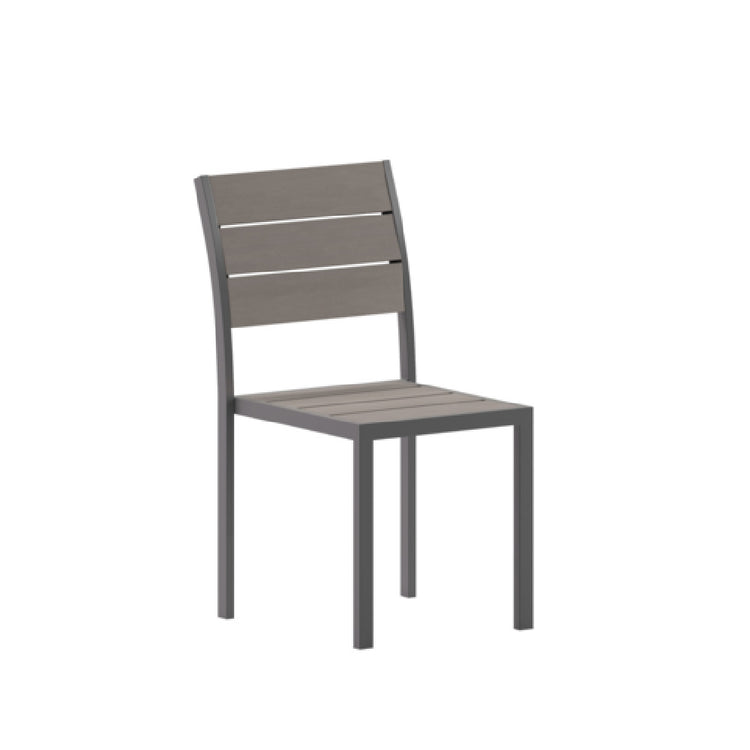 Flash Furniture, SB-CA108-GRY-GG, Finch Patio Chair, 300 lbs weight capacity, stackable, faux teak poly slats, metal frame, stacks up to 8 chairs high, gray (no assembly required)