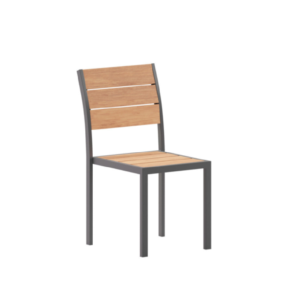 Why Choose the Flash Furniture SB-CA108-NAT-GG Finch Patio Chair for your outdoor seating needs? Its combination of weather-resistant faux teak slats, sturdy metal frame, and effortless stacking provides a restaurant-ready solution with a sleek appearance and long-term durability. Its no-assembly design enables quick deployment, supporting efficient outdoor service operations, while its lightweight construction simplifies handling and storage, outpacing many competitors in ease and longevity.