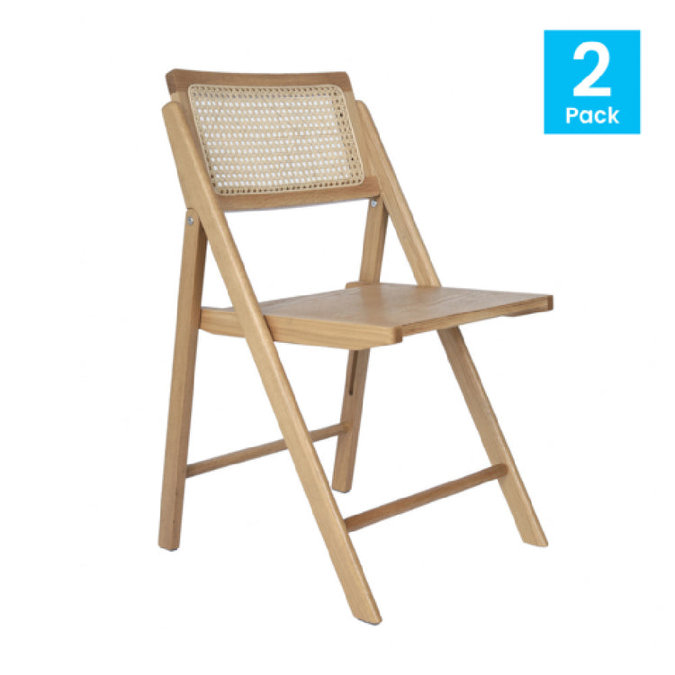 Flash Furniture, SK-220905-NAT-GG, Galene Folding Chair, cane rattan ventilated back, solid wood frame & seat, natural (set of 2)