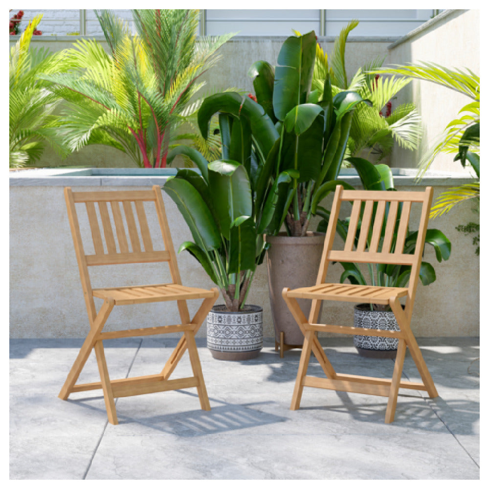 Why choose this model over other outdoor folding chairs is the combination of high-quality acacia wood, a stable X-frame design, and a supported weight capacity of 300 lbs., making it a resilient and reliable option for commercial outdoor use. Its natural finish and folding feature combine practical aesthetics with space-saving convenience, improving operational flexibility for outdoor dining spaces and events.