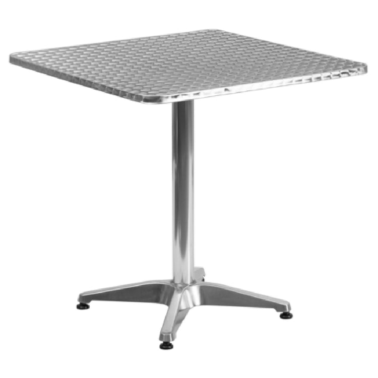 The Flash Furniture TLH-053-2-GG Table is a commercial-grade outdoor table designed with a durable stainless steel top measuring 27-1/2 inches square, ideal for versatile foodservice and hospitality applications. Featuring a lightweight aluminum column and base, it ensures stability while remaining easy to move. Suitable for indoor or outdoor use, this square table combines robust construction with a sleek finish, making it perfect for cafes, patios, or casual dining settings requiring weather-resistant surfaces and reliable performance.
