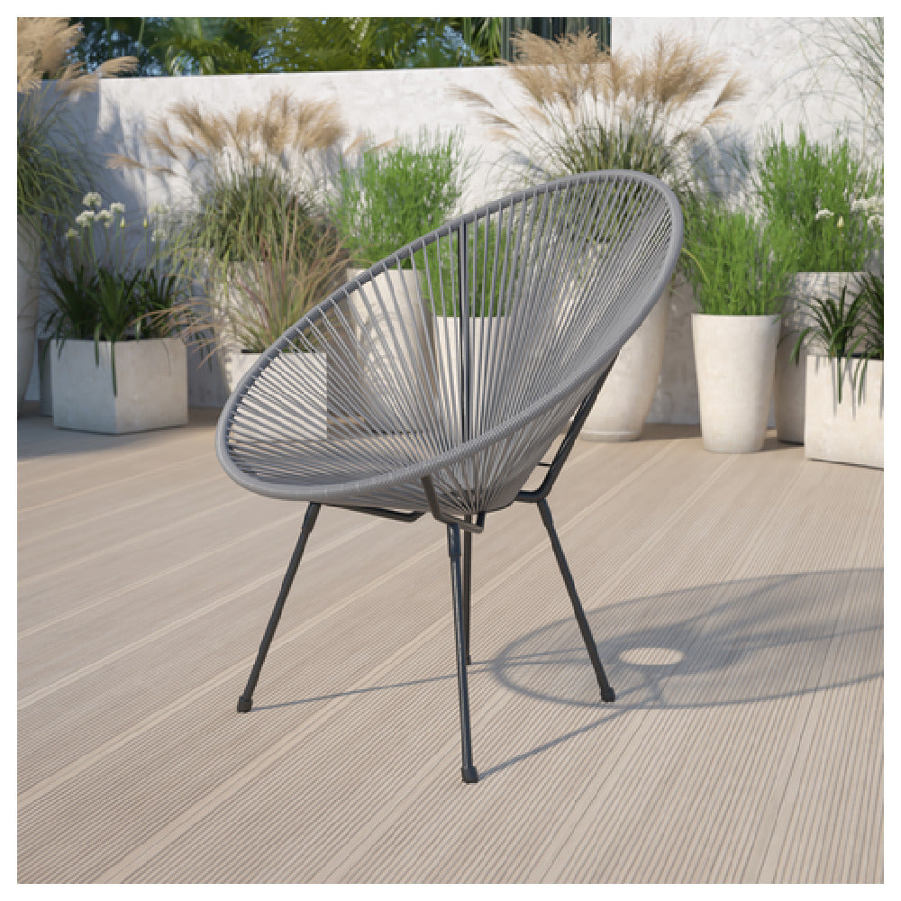 Built with weather-resistant steel and flexible support cords, this chair offers durability and ergonomic comfort for outdoor hospitality spaces. Flash Furniture TLH-094-GREY-GG provides reliable outdoor seating for moderate outdoor foodservice settings, optimized for high-traffic hospitality applications and outdoor lounge areas.