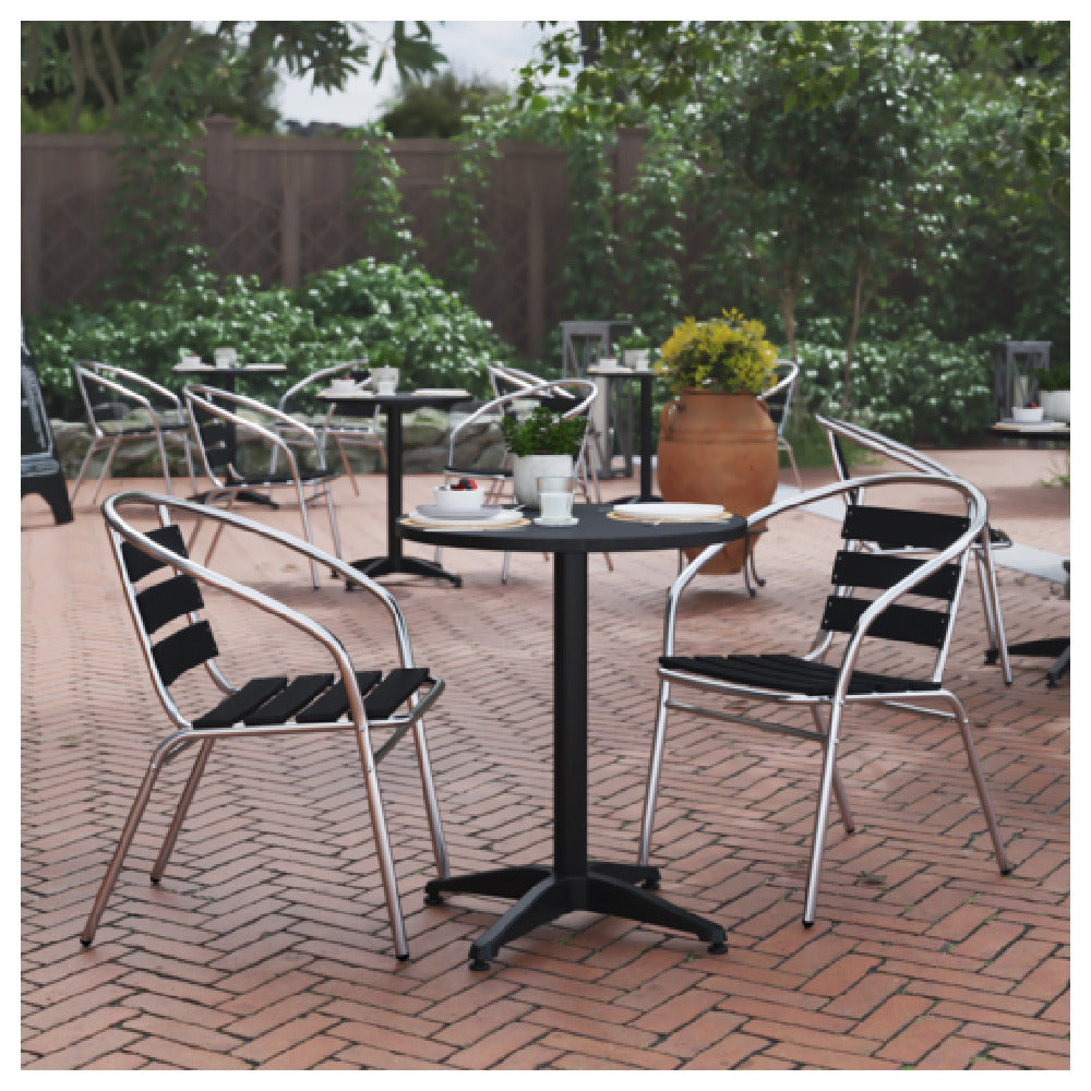 Constructed with weatherproof aluminum and steel, the Flash Furniture TLH-ALUM-24RD-017BK2-GG delivers durable performance for outdoor casual dining spaces. Its compact, restaurant-ready design ensures efficient space utilization and easy setup for outdoor patios, cafes, or quick-service venues, supporting moderate outdoor workloads with reliable, corrosion-resistant materials.