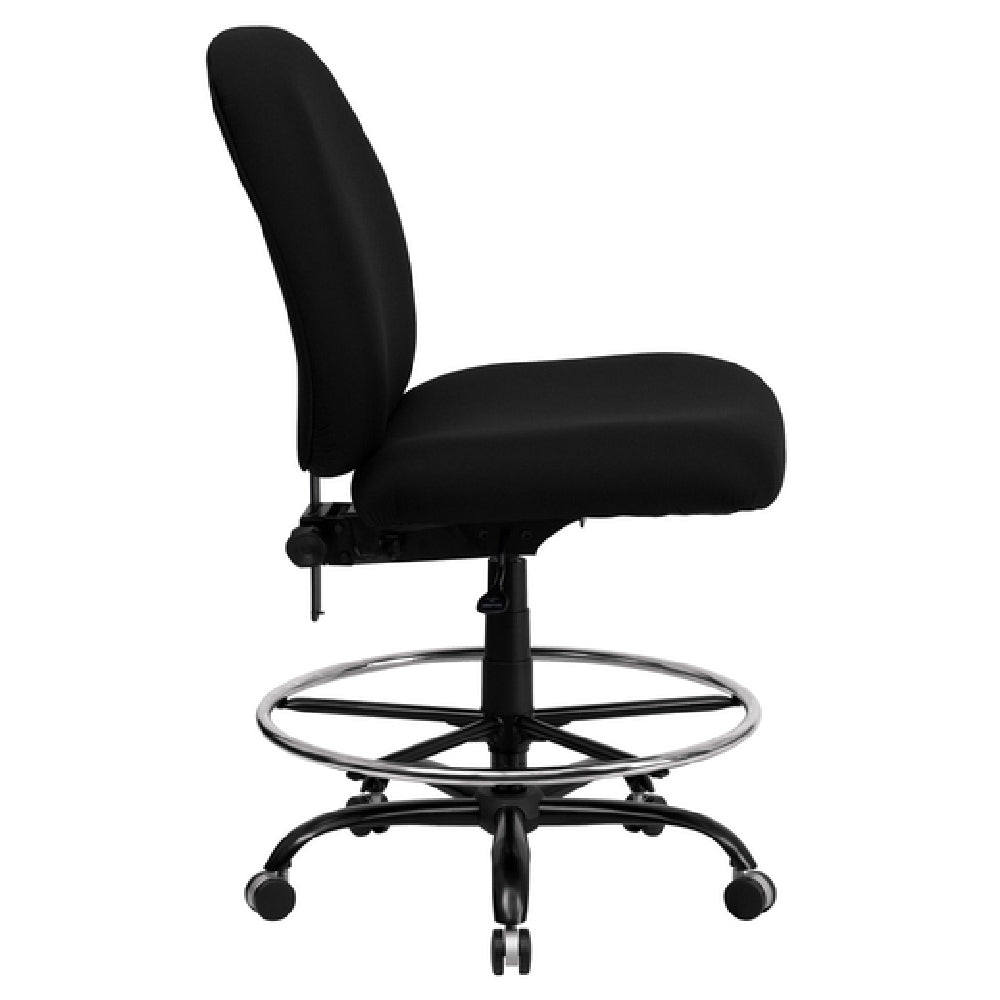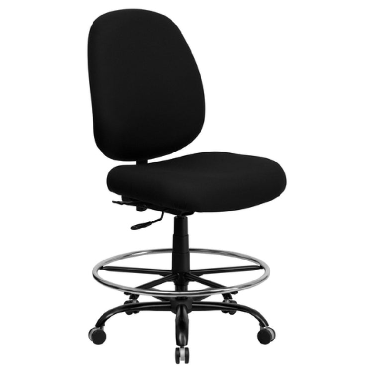 Flash Furniture, WL-715MG-BK-D-GG, Hercules Series Big & Tall Drafting Stool, 44-1/2" to 52-1/2" adjustable height, 400 lb. weight capacity, high back design, 22-1/2"W x 4" thick padded seat, fabric upholstery, 3" adjustable height back, infinite-locking back angle adjustment, without arms, height adjustable chrome foot ring, CA117 fire retardant foam, heavy duty black metal base, dual wheel carpet casters, black (assembly required) (in stock items usually ship within 24 hours)