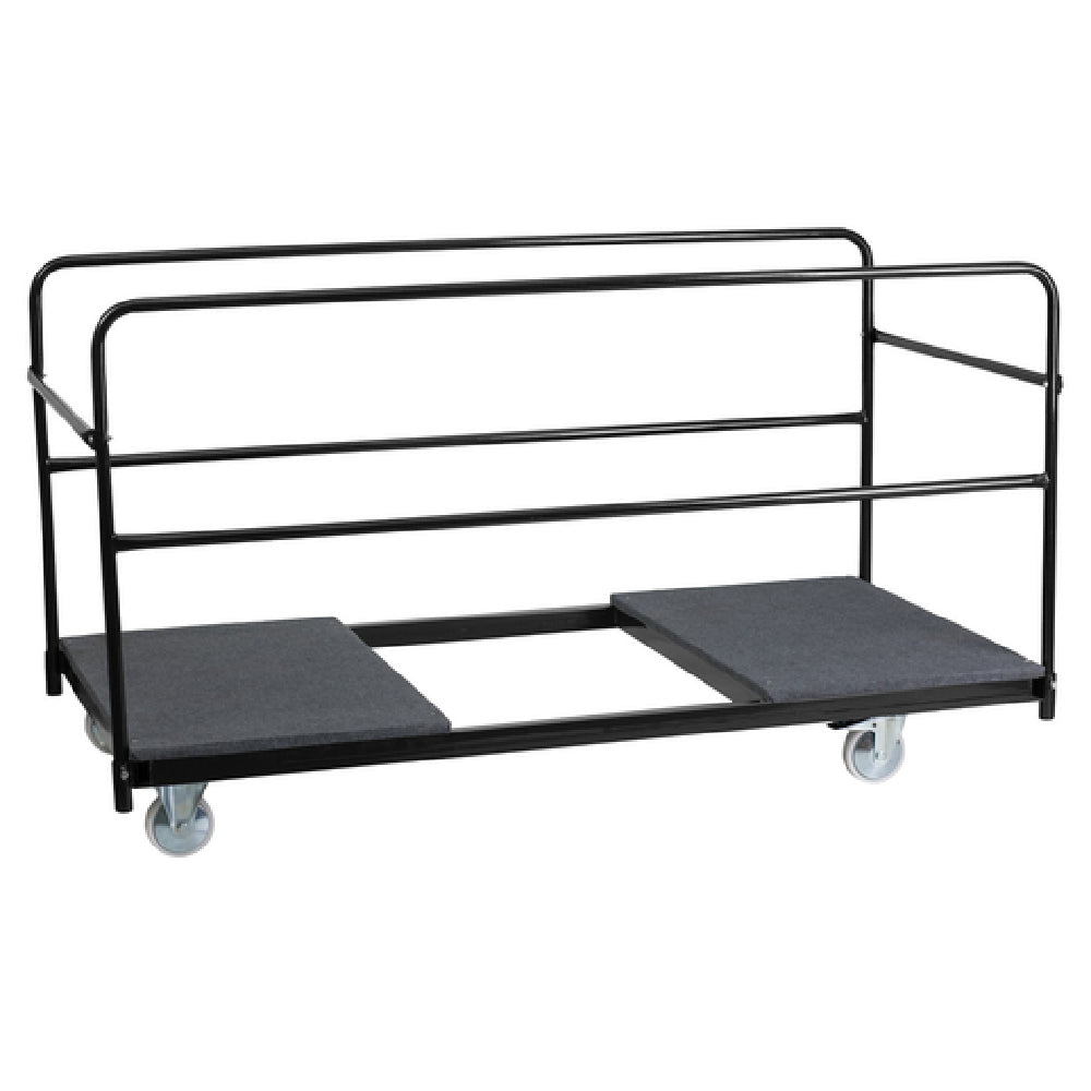 Flash Furniture, XA-74-DOLLY-GG, Folding Table Dolly, 74-1/2"W x 36"D x 40-1/2"H, holds up to (10) 72" round folding tables, 23-1/4"L gray carpeted platform, tubular handles, powder coated steel frame, support braces, (4) 5" rubber casters (2 locking), designed for commercial use, black (assembly required) (in stock items usually ship within 24 hours)