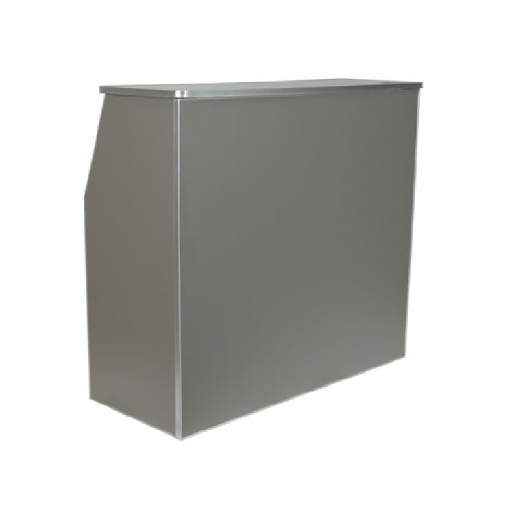 The Amara Folding Bar Table features a stainless steel frame with a laminate top finished in slate gray, ensuring high durability and ease of cleaning. With a height of 42.75 inches and a width of 47.75 inches, it supports moderate workloads typical of portable bar setups and catering stations. Its weight of 95.5 pounds makes it manageable for frequent repositioning in busy foodservice environments. The table does not require electrical connections or specialized installation; instead, it offers straightforward setup with its foldable design. The laminate surface is resistant to stains and scratches, supporting hygienic cleaning routines essential for commercial foodservice spaces, including events and temporary hospitality stations.