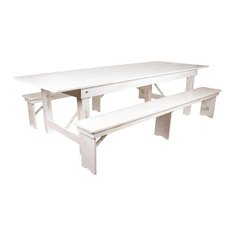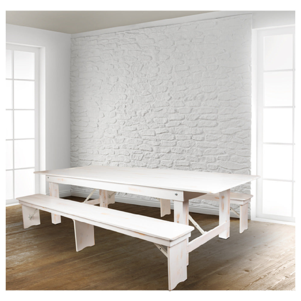 Flash Furniture XA-FARM-6-WH-GG 108 Inch Folding Farm Table Set with Benches Rustic White - 1/Set