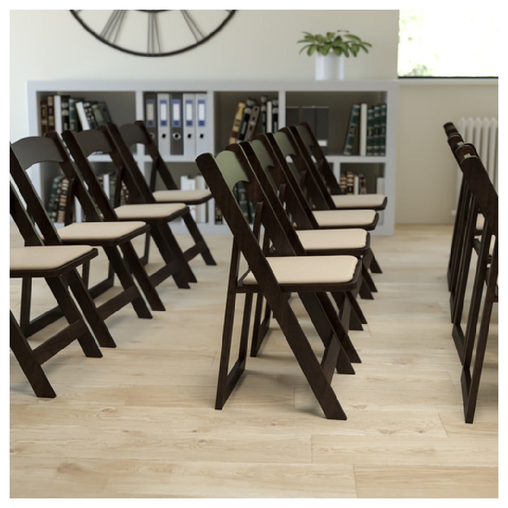 These durable, space-efficient indoor folding chairs like the XF-2903-CHOC-WOOD-GG from Flash Furniture deliver reliable performance in moderate-use foodservice settings, including banquet halls and cafeterias. Built with quality beechwood and waterproof vinyl, they facilitate swift setup with a focus on safety and longevity. These chairs support efficient workflow and quick turnover in busy foodservice operations, making them a dependable choice for commercial kitchens and event spaces.