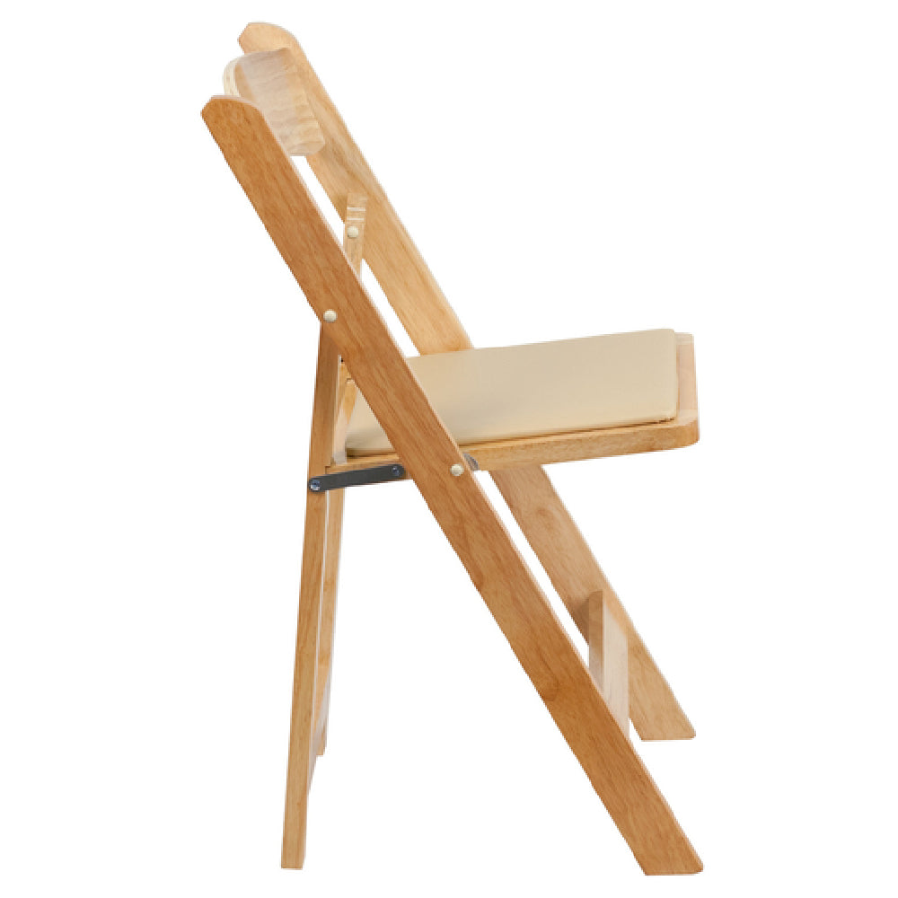 Flash Furniture, XF-2903-NAT-WOOD-GG, Hercules Series Folding Chair, lightweight, beige padded vinyl upholstered seat, waterproof detachable seat, beechwood construction, natural wood finish with clear lacquer varnish, designed for indoor/outdoor commercial use (in stock items usually ship within 24 hours)