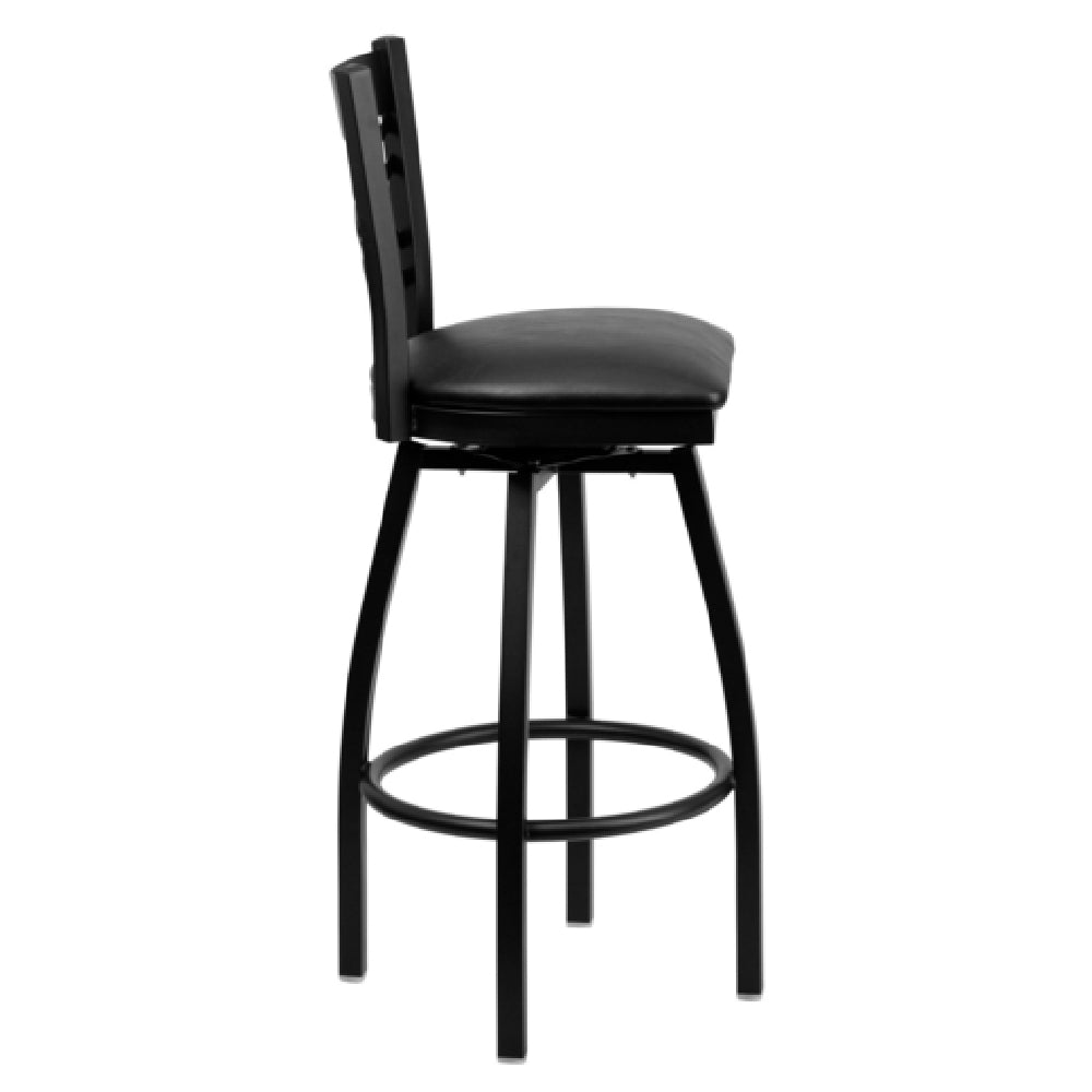 This commercial indoor swivel bar stool offers durable construction and ergonomic design, ideal for busy restaurant or hospitality settings. Manufactured by Flash Furniture, model XU-6F8B-XSWVL-BLKV-GG, it combines safety, stability, and ease of maintenance for high-operation environments.