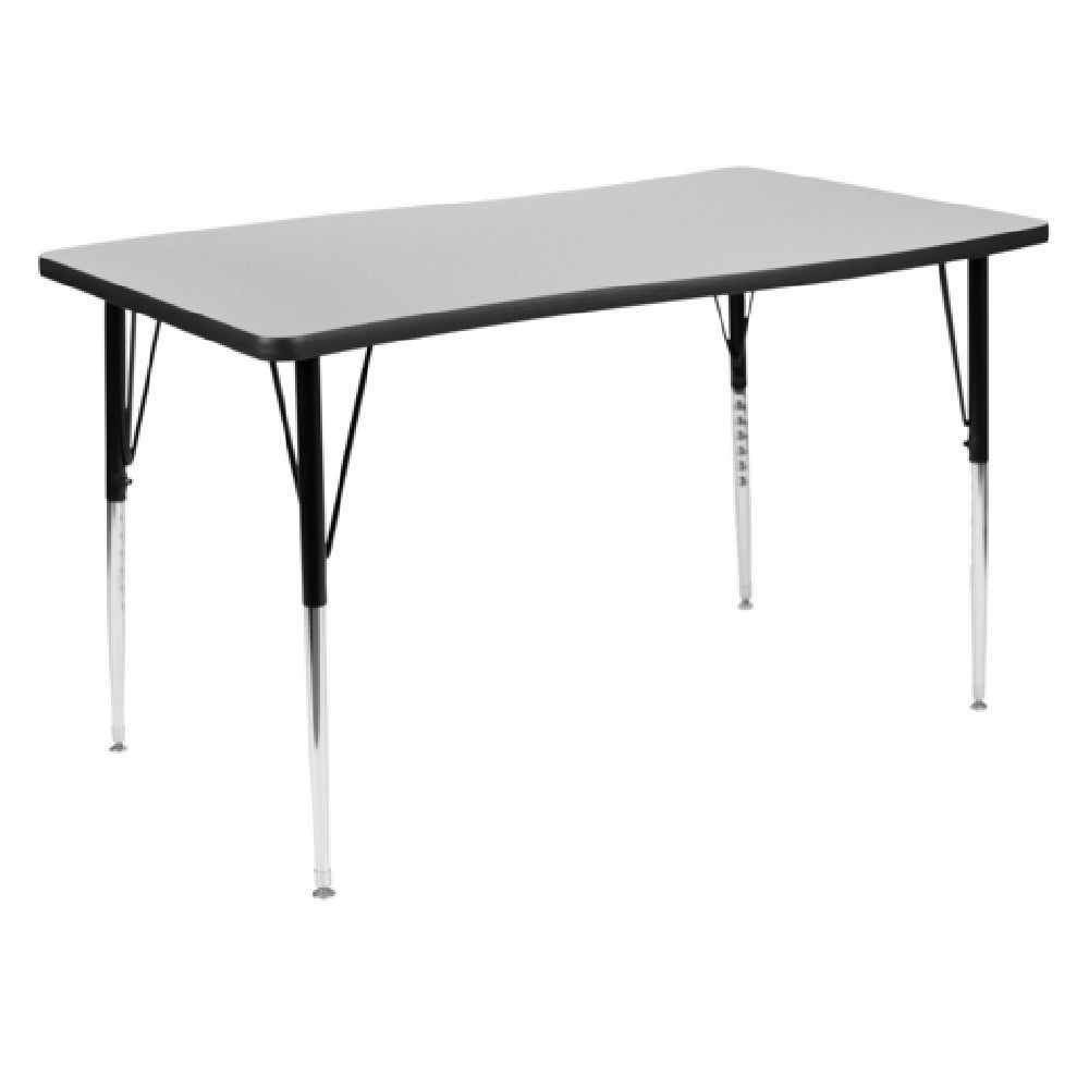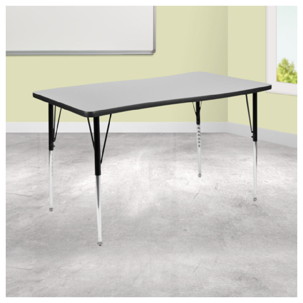The Flash Furniture XU-A3048-CON-GY-T-A-GG Wren Activity Table is a commercial-grade indoor activity table designed for versatile use in educational, institutional, and hospitality environments. It features a rectangular wave laminate top measuring 47-1/2 inches wide by 28 inches deep and adjustable height from 21-1/4 to 30-1/4 inches. Constructed with 16 gauge tubular steel legs and durable plastic edging, this table offers stability and resilience for a range of activities, supporting user weights and frequent adjustments while maintaining an easy-to-clean surface suitable for high-traffic settings. Its technical specifications make it an optimal choice for spaces requiring frequent reconfiguration, durable surfaces, and ergonomic adjustments, emphasizing high-use environments such as schools, community centers, and collaborative workspaces.
