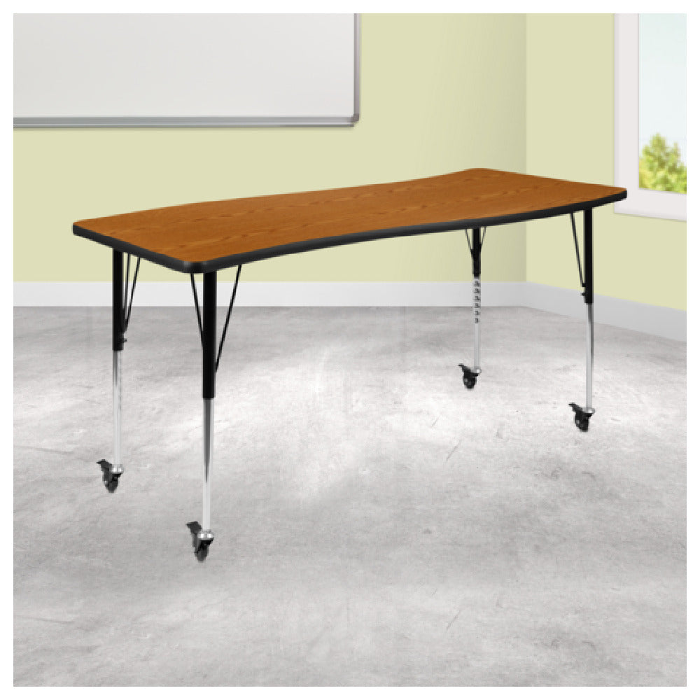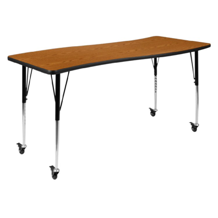 The Flash Furniture XU-A3060-CON-OAK-T-A-CAS-GG Wren Activity Table is a commercial-grade indoor activity table designed for versatile use across educational, hospitality, and institutional foodservice environments. Featuring a 60-inch width and 26-inch depth with an adjustable height range of 20 to 30 inches, it provides a durable laminate top supported by 16-gauge tubular steel legs for enhanced stability. Its rectangular wave shape facilitates nesting or multi-unit deployment, making it well-suited for classrooms, cafeterias, and collaborative workspaces requiring robust, space-efficient surfaces. The table’s construction emphasizes durability, ease of maintenance, and compatibility with diverse workflows, with key specifications including a plastic laminate top and locking casters for mobility within high-demand settings.