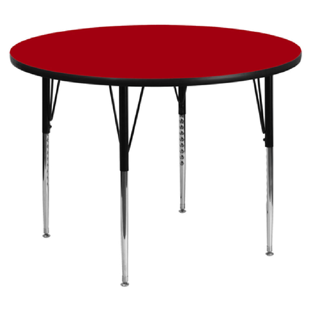 Flash Furniture, XU-A42-RND-RED-T-A-GG, Activity Table, 42" dia. x 21-1/8" to 30-1/8" adjustable height, round, 1-1/8" thick thermal fused red laminate top, scratch and stain resistant surface, black edge band, 16 gauge tubular steel legs, black powder coated upper legs and chrome lower legs, self-leveling floor glides (shipped in 2 boxes) (in stock items usually ship within 24 hours)