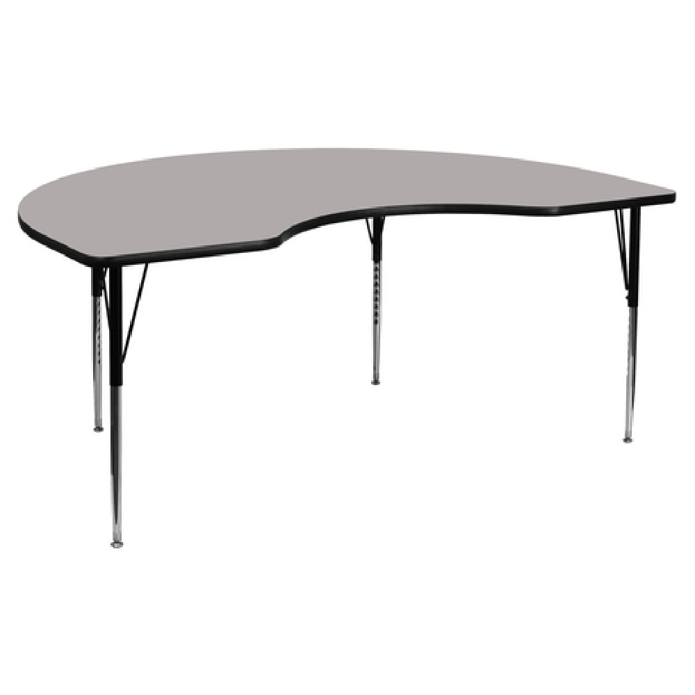 Flash Furniture, XU-A4872-KIDNY-GY-H-A-GG, Activity Table, 72"W x 48"D x 21-1/4" to 30-1/4" adjustable height, kidney shaped, 1-1/4" thick high pressure gray laminate top, scratch and stain resistant surface, black edge band, 16 gauge tubular steel legs, black powder coated upper legs and chrome lower legs, self-leveling floor glides (shipped in 2 boxes) (in stock items usually ship within 24 hours)