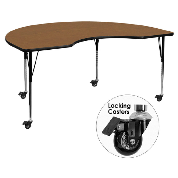 Flash Furniture XU-A4896-KIDNY-OAK-T-A-CAS-GG 96 Inch Kidney Activity Table with Steel Legs