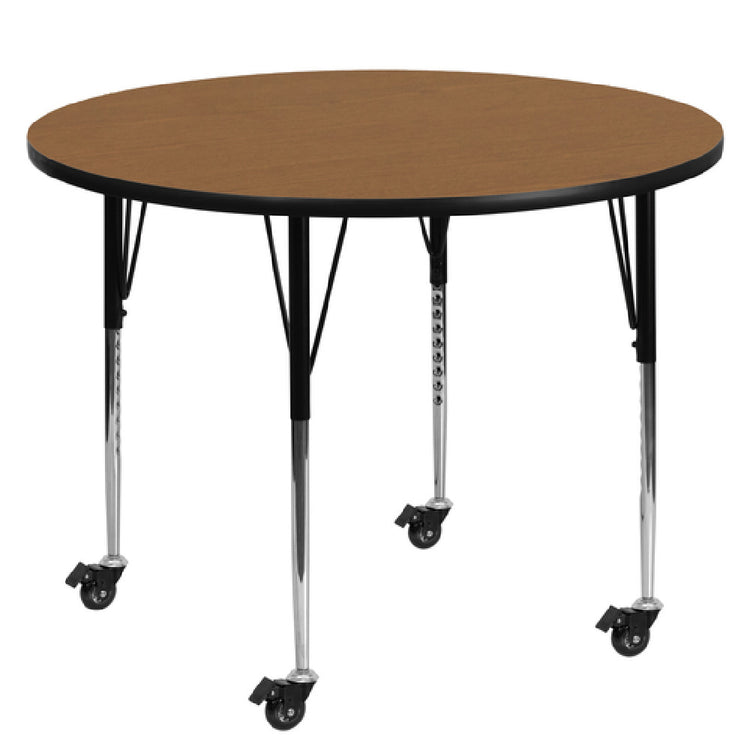 Flash Furniture XU-A60-RND-OAK-T-A-CAS-GG 60 Inch Dia Round Activity Table with Adjustable Height