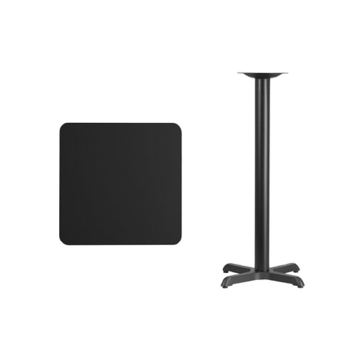 Flash Furniture, XU-BLKTB-2424-T2222B-GG, Table, 24"W x 24"D x 43-1/8"H, bar height, square, 1-1/8" thick, MDF with melamine core, black laminate finish, black PVC T-mold edge, pre-welded top plate, 22" x 22" x-base, 3" dia. cast iron column with black powder coated finish, designed for commercial use (assembly required) (shipped in 3 boxes) (in stock items usually ship within 24 hours)