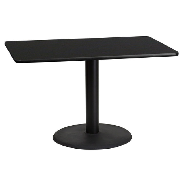 This model from Flash Furniture distinguishes itself through a robust MDF top with melamine core for maximum durability, combined with a sleek black laminate and a stable pedestal base. Its straightforward assembly process and stain-resistant surface reduce maintenance time, improving operational efficiency. The table’s design optimally balances style and strength, making it ideal for restaurant, café, or institutional use while providing a consistent, reliable performance under daily commercial demands.