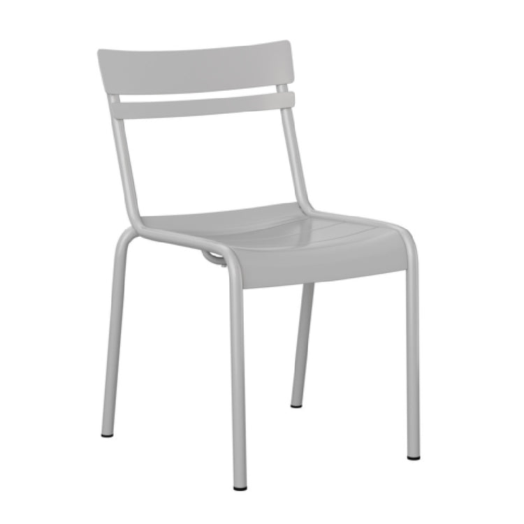 Designed for commercial outdoor seating, this chair enhances space efficiency and durability for high-traffic foodservice operations.