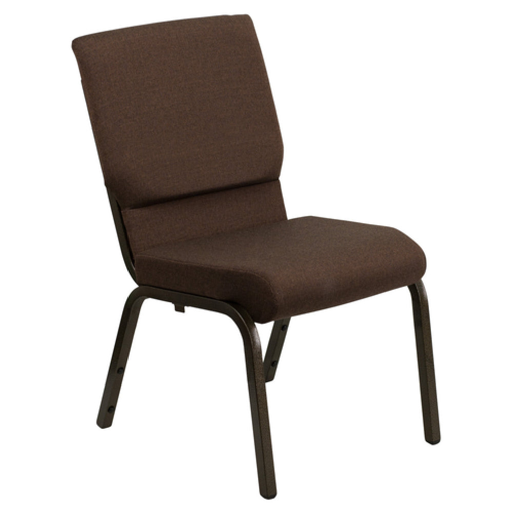 Flash Furniture, XU-CH-60096-BN-GG, Hercules Series Stacking Church Chair, 800 lb. weight capacity, polyester upholstery, 4-1/4" thick waterfall edge seat, CA117 fire retardant foam, book pouch on back, 16 gauge steel frame, gold vein frame finish, ganging brackets, plastic rocker glides, brown (assembly required) (in stock items usually ship within 24 hours)