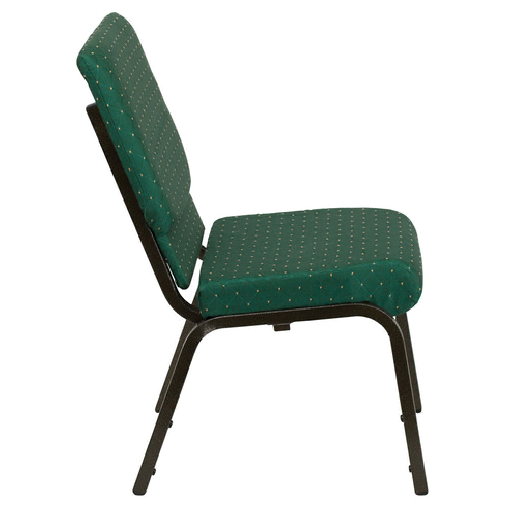 Flash Furniture, XU-CH-60096-GN-GG, Hercules Series Stacking Church Chair, 800 lb. weight capacity, patterned polyester upholstery, 4-1/4" thick waterfall edge seat, CA117 fire retardant foam, book pouch on back, 16 gauge steel frame, gold vein frame finish, ganging brackets, plastic rocker glides, green (assembly required) (in stock items usually ship within 24 hours)