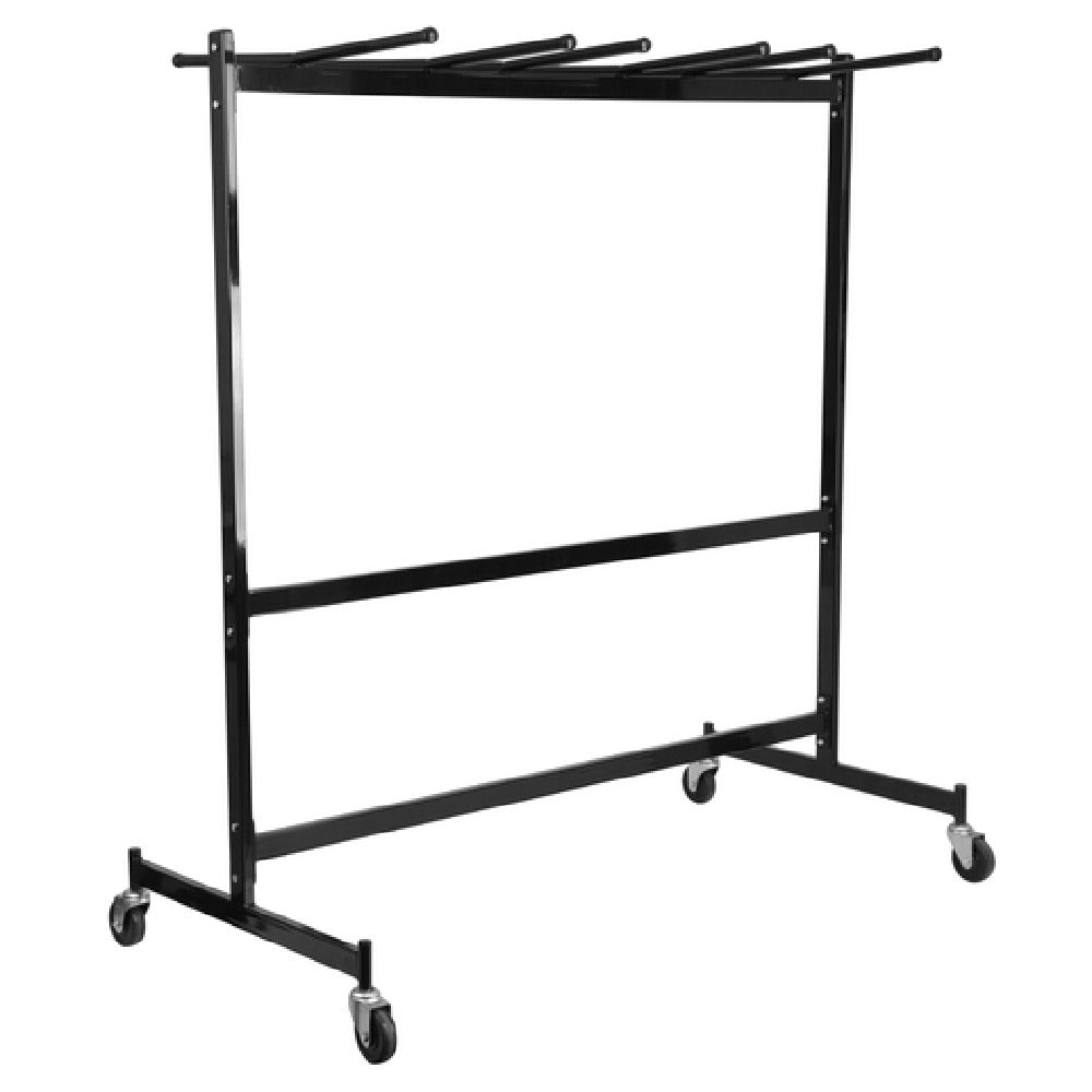 The Flash Furniture XU-CT-DOLLY-GG Chair and Table Combo Dolly is a commercial-grade furniture transport solution designed for efficient stacking and storage of folding chairs and large tables. Measuring 66 inches wide by 37-1/2 inches deep and 71-1/2 inches high, this steel tubular frame dolly supports up to 42 folding chairs and 8 tables ranging from 72 to 96 inches wide and 18 to 36 inches deep. Equipped with rubber-stopped hanger bars and four rubber swivel casters, it ensures smooth maneuverability and stability during transport in high-traffic foodservice environments such as banquet halls, conference centers, and cafeteria settings. Its rugged construction and glossy powder-coated finish deliver durability suitable for repeated commercial use, facilitating quick setup and storage for event operations and large-scale catering.