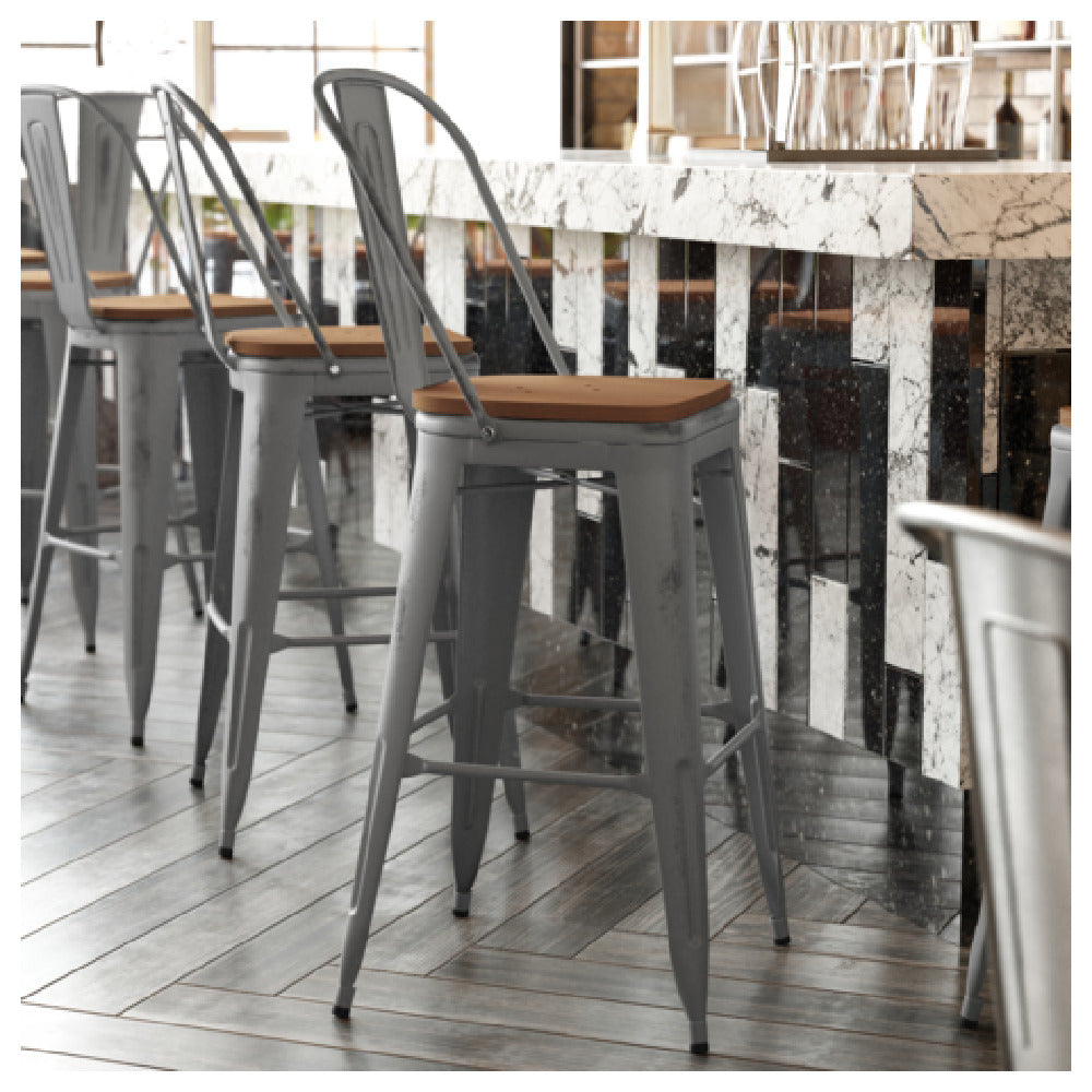 Ideal for indoor bar seating in commercial foodservice environments requiring durable and reliable seating options.