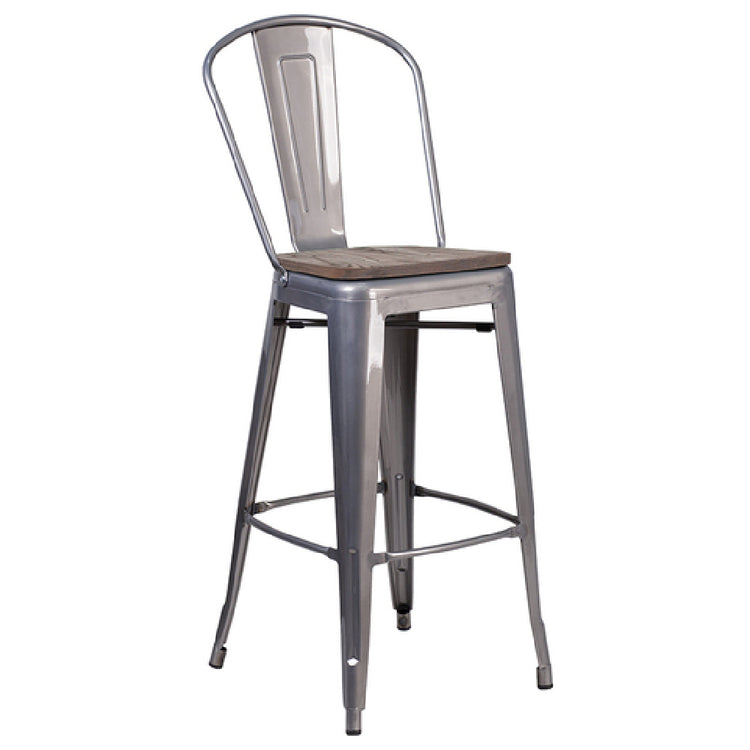 Flash Furniture XU-DG-TP001B-30-WD-GG 17.75 Inch Wood Seat Bar Stool Silver Finish
