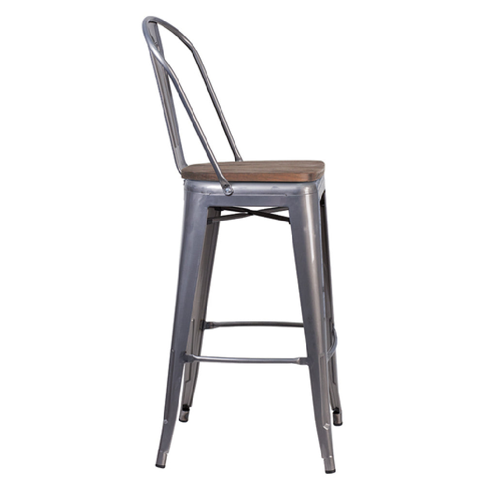 Built with galvanized steel and a textured wood seat, the Flash Furniture XU-DG-TP001B-30-WD-GG offers rugged durability and ergonomic comfort for high-volume hospitality settings. Its 30-1/2" seat height supports various high-top tables, making it suited for busy bars, cafes, and lounges. Designed for operational practicality, it enables reliable, stable seating during peak hours while maintaining a sleek appearance for restaurant environments.