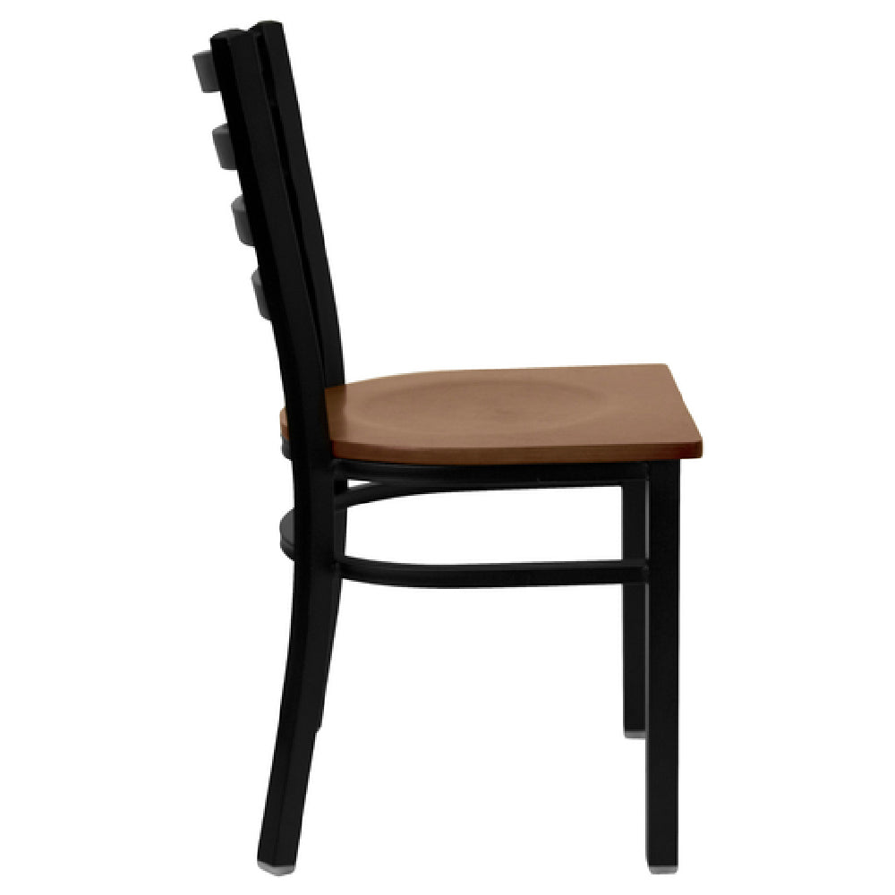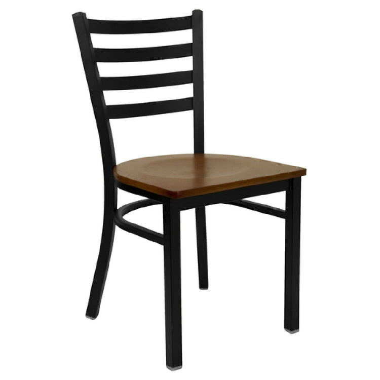 The Flash Furniture XU-DG694BLAD-CHYW-GG Hercules Series Restaurant Chair exemplifies durable, professional-grade seating designed for high-traffic commercial dining environments. Constructed with a welded joint assembly and an 18 gauge steel frame finished with durable black powder coating, this chair guarantees stability and longevity. Its metal ladder back provides ergonomic support, while the 5/8" thick cherry finish plywood seat ensures comfort and ease of maintenance. Engineered for commercial use, this seat is suitable for restaurant, cafeteria, or catering settings, offering dependable performance and a sleek appearance. With precise dimensions and a lightweight 14 lbs frame, it balances durability with maneuverability, making it an ideal choice for versatile seating applications in diverse foodservice operations.