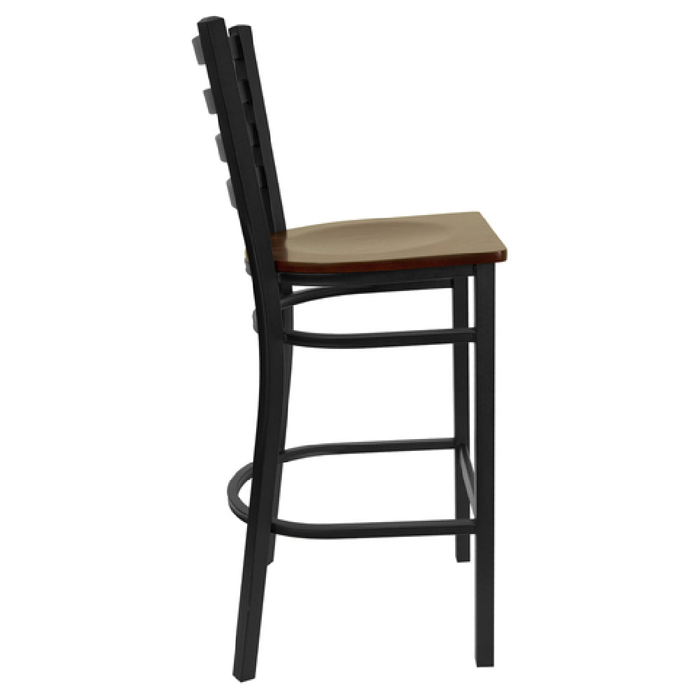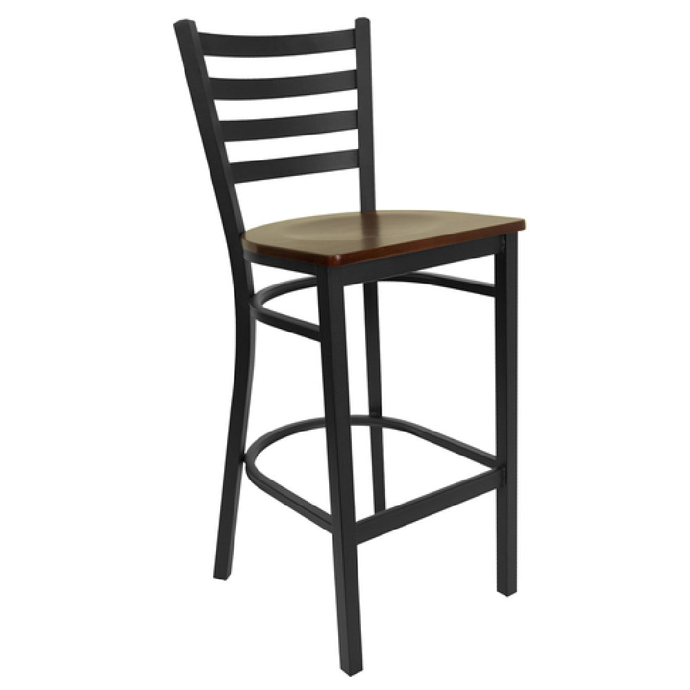 Flash Furniture XU-DG697BLAD-BAR-MAHW-GG 17 Inch Restaurant Bar Stool Metal Ladder Back with Footrest
