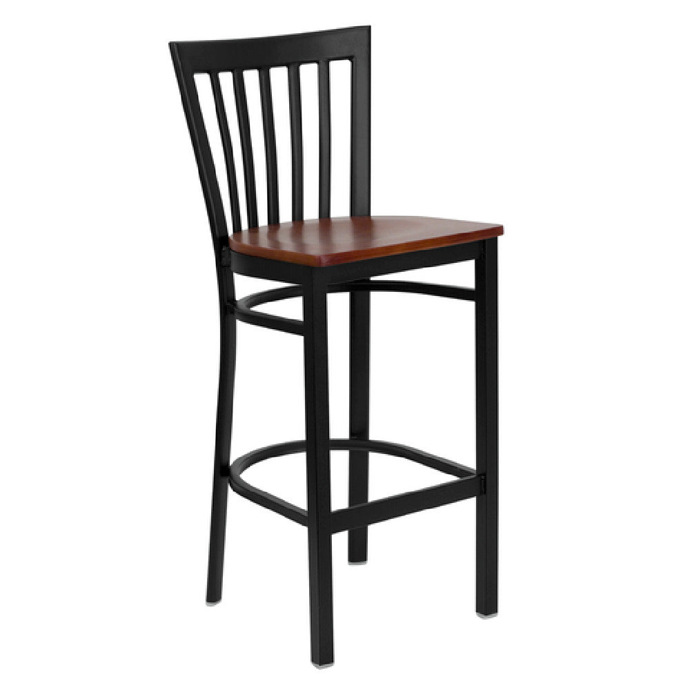 Flash Furniture, XU-DG6R8BSCH-BAR-CHYW-GG, Hercules Series Restaurant Bar Stool, metal schoolhouse back, 5/8" thick cherry finish plywood seat, welded joint assembly, (2) curved support bars, footrest, 18 gauge steel black powder coated frame, plastic floor glides, designed for commercial use (assembly required) (in stock items usually ship within 24 hours)