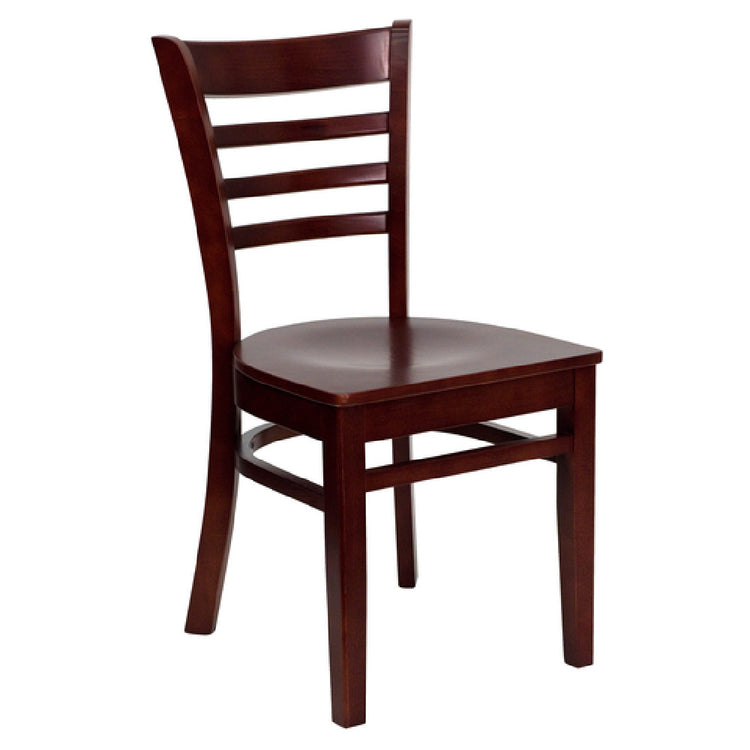 A commercial dining chair is a durable, ergonomically designed seating unit intended for high-traffic foodservice environments such as restaurants, cafés, and hospitality venues. The Flash Furniture Hercules Series Restaurant Chair XU-DGW0005LAD-MAH-GG features a mahogany-finished European beechwood frame and ladder back style that supports everyday use. Its construction emphasizes stability, ease of maintenance, and spatial efficiency, making it suitable for installation in various indoor dining areas tailored for moderate to high throughput seating needs, ensuring consistent guest comfort and operational efficiency.