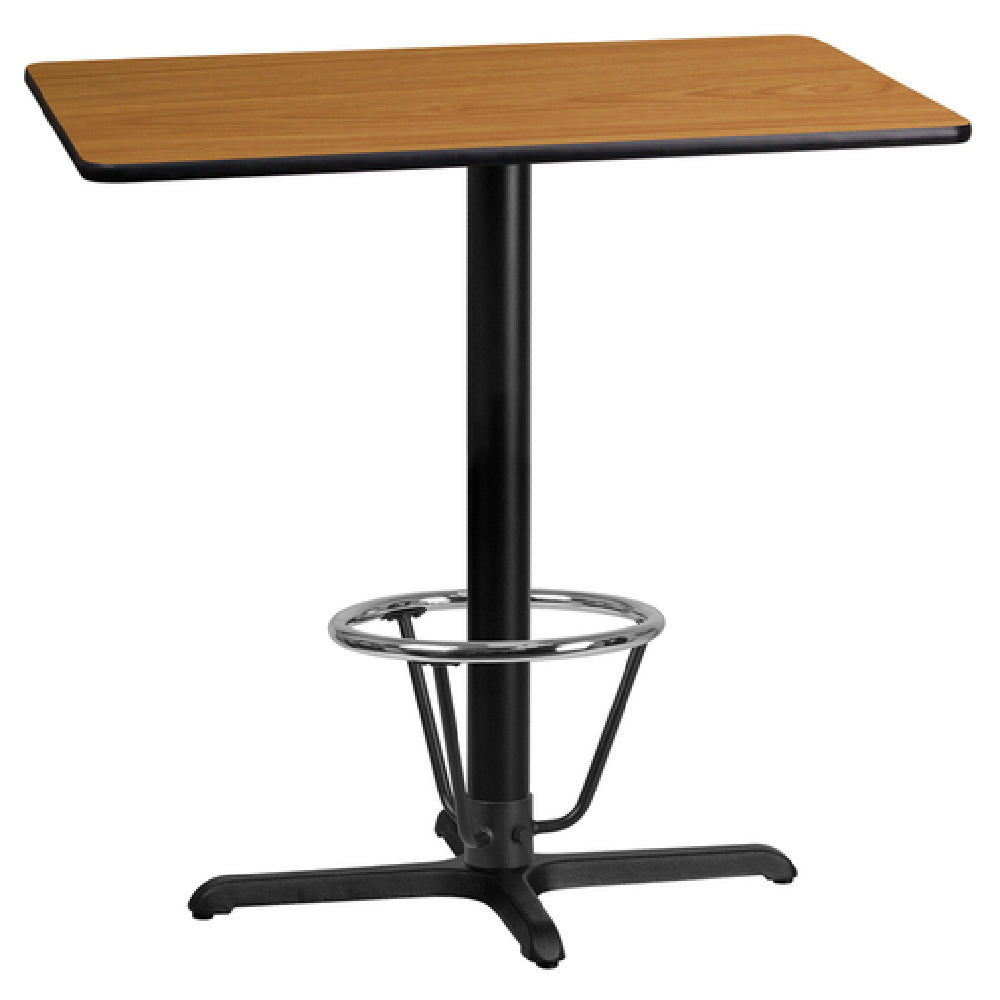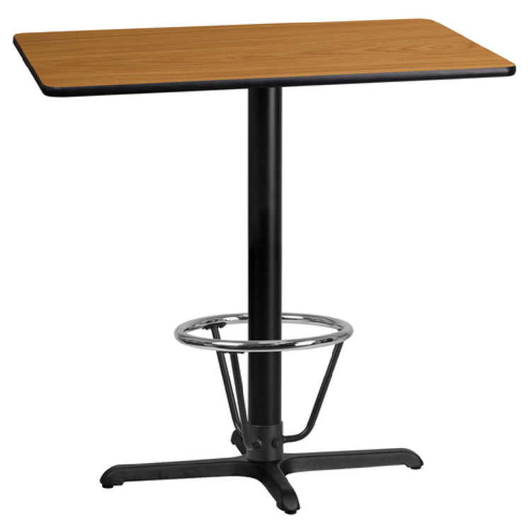 The Flash Furniture XU-NATTB-2442-T2230B-3CFR-GG Table is a commercial-grade indoor bar height table designed for use in professional foodservice environments. Measuring 42 inches wide by 24 inches deep and standing at 43-1/8 inches high, this rectangular table features a durable MDF surface with a melamine core and a natural laminate finish, providing resistance to scratches and stains. Its modern aesthetic is complemented by a black PVC T-mold edge, ensuring longevity and ease of maintenance. Equipped with a pre-welded top plate and a sturdy pedestal base, incorporating a 3-inch diameter cast iron column finished in black powder coating, this table delivers stability suited for high-traffic hospitality settings. The chrome foot ring enhances user comfort, making it ideal for bars, cafes, or quick-service establishments requiring reliable, easy-to-clean furniture. Its technical specifications confirm suitability for continuous commercial use, with a total weight of 55 lbs for ease of installation and repositioning.