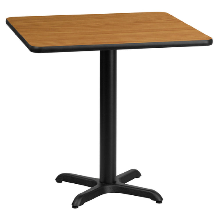The Flash Furniture XU-NATTB-3030-T2222-GG Indoor Dining Table is a professional-grade square table designed for commercial foodservice environments. Measuring 30 inches in width and depth with a height of 31-1/8 inches, it provides a stable, restaurant-ready surface for dining applications. Constructed with a durable MDF core topped with a melamine finish and finished with black PVC T-mold edges, this table offers resistance to scratches and staining. Its built-in pre-welded top plate and pedestal base ensure structural integrity, making it suitable for medium-volume restaurant setups and institutional dining spaces. The 1-1/8 inch thick top combines aesthetic appeal with functional durability, ideal for high-traffic foodservice operations requiring consistent performance and easy maintenance.