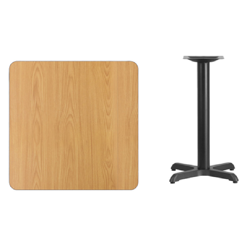 A commercial dining table is a professionally manufactured surface designed for high-traffic foodservice environments, supporting meal service and customer seating. The Flash Furniture XU-NATTB-3030-T2222-GG Table features a durable MDF melamine core, a square 30-inch by 30-inch top, and a height of 31-1/8 inches, optimized for restaurant and cafeteria use. Its sturdy pedestal base provides stability in busy settings, making it ideal for moderate-volume hospitality operations requiring repeated exposure to daily impacts, cleaning, and sanitation routines. Installed in dining areas of restaurants, cafes, or institutional facilities, it ensures reliable performance in supporting service workflows and guest comfort.