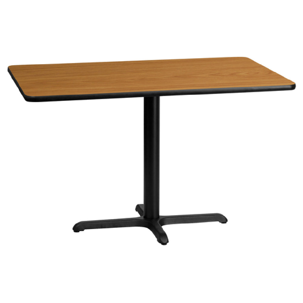 The Flash Furniture XU-NATTB-3048-T2230-GG Table is a commercial-grade indoor dining table designed for versatile foodservice environments. With dimensions of 48 inches in width, 30 inches in depth, and a height of 31-1/8 inches, it features a durable MDF top with a melamine core, finished in a natural laminate surface. Reinforced with a black PVC T-mold edge, this rectangular table provides a stable, high-quality surface suited for busy restaurant, café, or catering settings. Its pre-welded top plate and pedestal base with a 22" x 30" footprint ensure stability and ease of installation, making it an efficient solution for ID-based seating arrangements and mid-to-high-volume dining operations. Expertly engineered for durability and functional performance, it addresses the needs of commercial foodservice spaces requiring resilient, attractive furnishings.