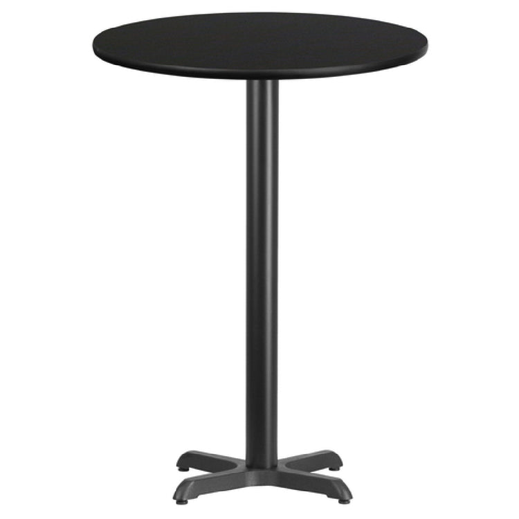 The Flash Furniture XU-RD-30-BLKTB-T2222B-GG Table 30" Diameter x 43-1/8" High is a commercial-grade pub table designed for indoor bar-height settings. Constructed with a 1-1/8" MDF top featuring a melamine core, it offers durability and resistance to wear. The black laminate finish combined with a PVC T-mold edge ensures its suitability for high-traffic hospitality environments, such as restaurants, bars, and entertainment venues. Its precise dimensions and robust materials support consistent performance in moderate-volume foodservice applications, making it an optimal choice for operators requiring reliable, stylish counter-height furnishings.