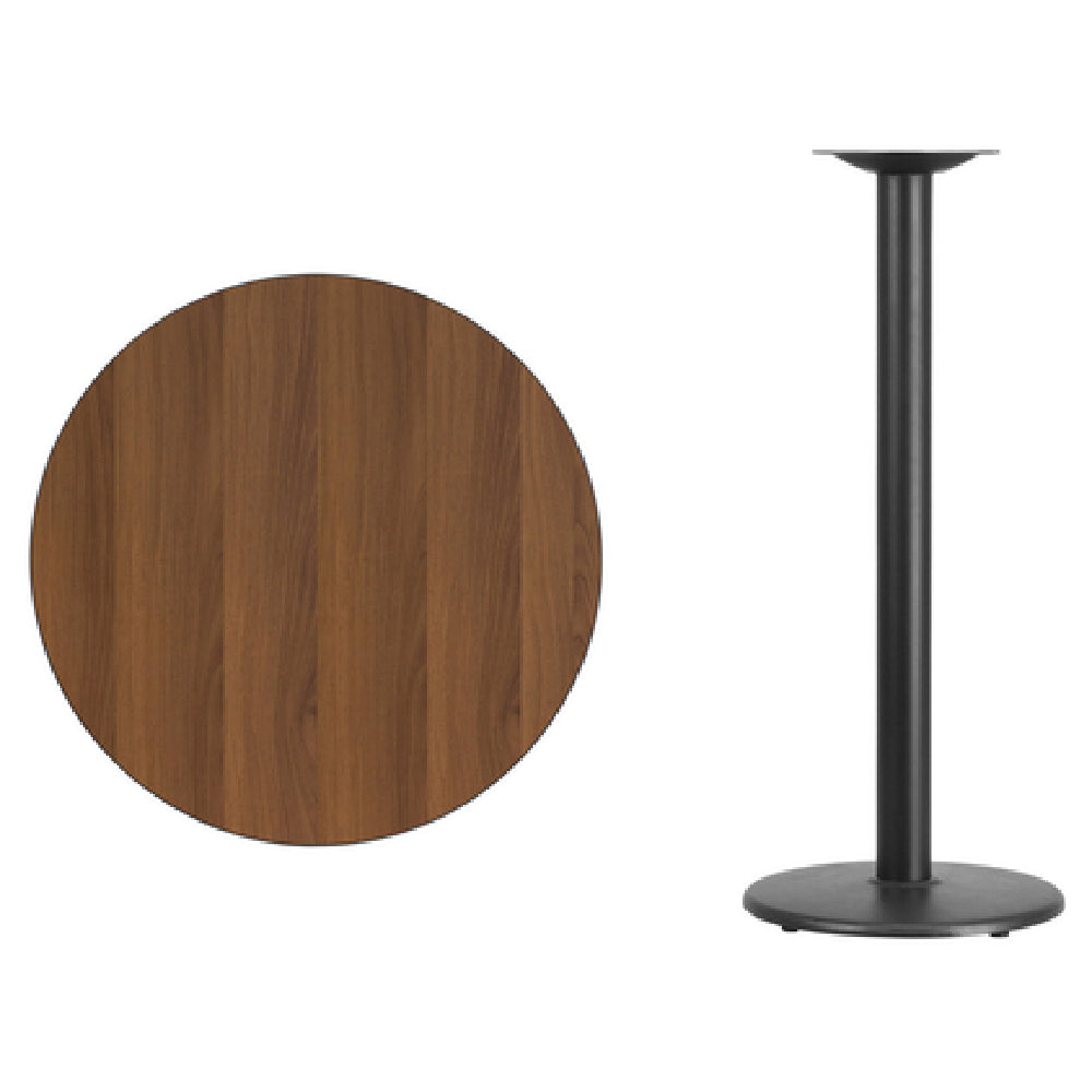 Flash Furniture XU-RD-30-WALTB-TR18B-GG 30 Inch Bar Height Round Table MDF with Walnut Laminate
